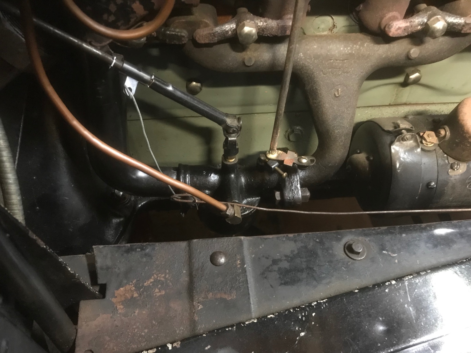 Vaporizer system is unique. First off, it has an weighted air valve on the intake, A hot plate section that has to have a true surface to be mounted and to be compressed so that there is no air leakage from the outside going in to the mixture, may use the larger gas float, a different spray nozzle/ mixture needle adjustment, different throttle and choke linkages..... Our 26 runabout came with a vaporizer set up that did run the engine very well. ........ when I did switch to the NH, I used a straight through NH from 1920, an original 1912 larger aluminum intake, nos Ford exhaust manifold and installed a connector on the throttle rod to connect the NH along with new linkage to operate the choke on startup, and gas mixture...... So why did I put an NH on the engine?? I purposely changed to get more power with standard parts , sacrificed the economy of the vaporizer.