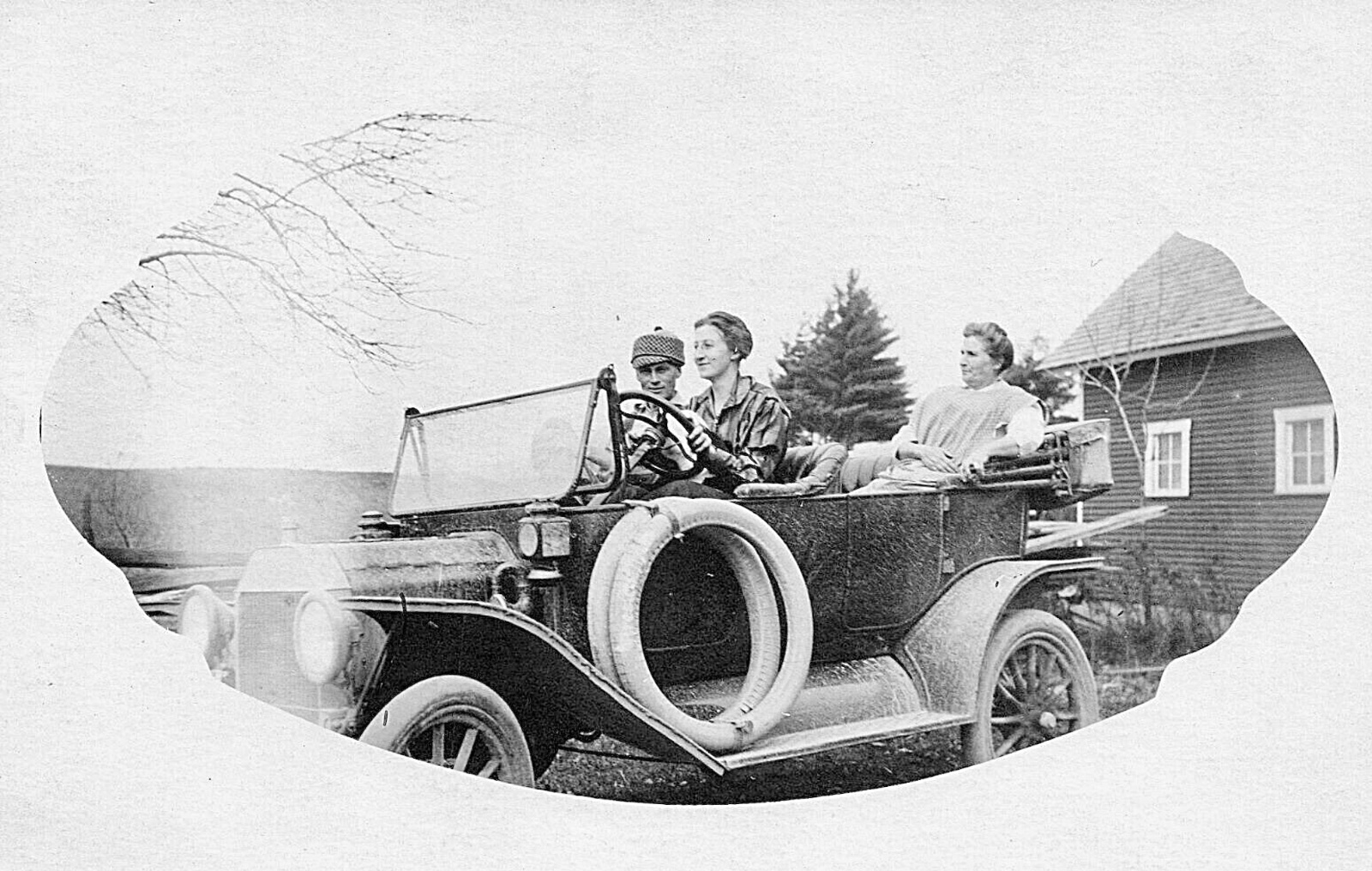 Photo number three, under all those guys, appears to be a 1915/'16 touring car, but with a non standard windshield. After-market? Later Canadian? The sidelamps and I think I can see a small bit of the cowling seem to confirm it as a 1915/'16, and not an earlier touring with the after-market cowl cap and windshield update. However, almost anything is possible?
