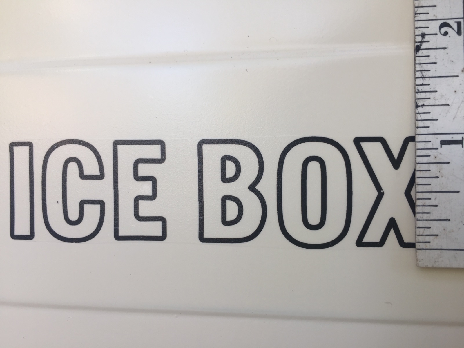 “ICE BOX” Seems to be written and 1 inch lettering.