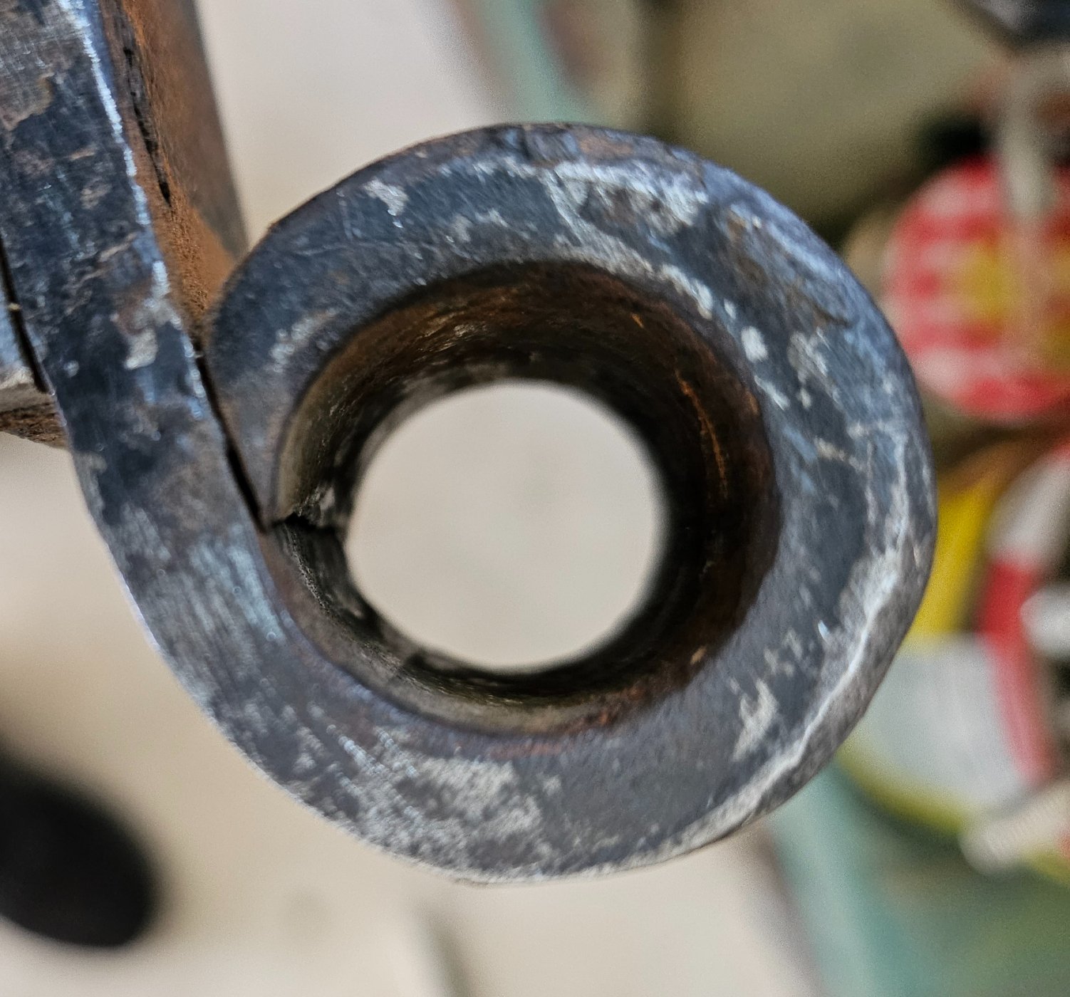 Tight side with steel bushing... Worn side with steel bushing... Worn eyelet without bushing where you can see the slight oval