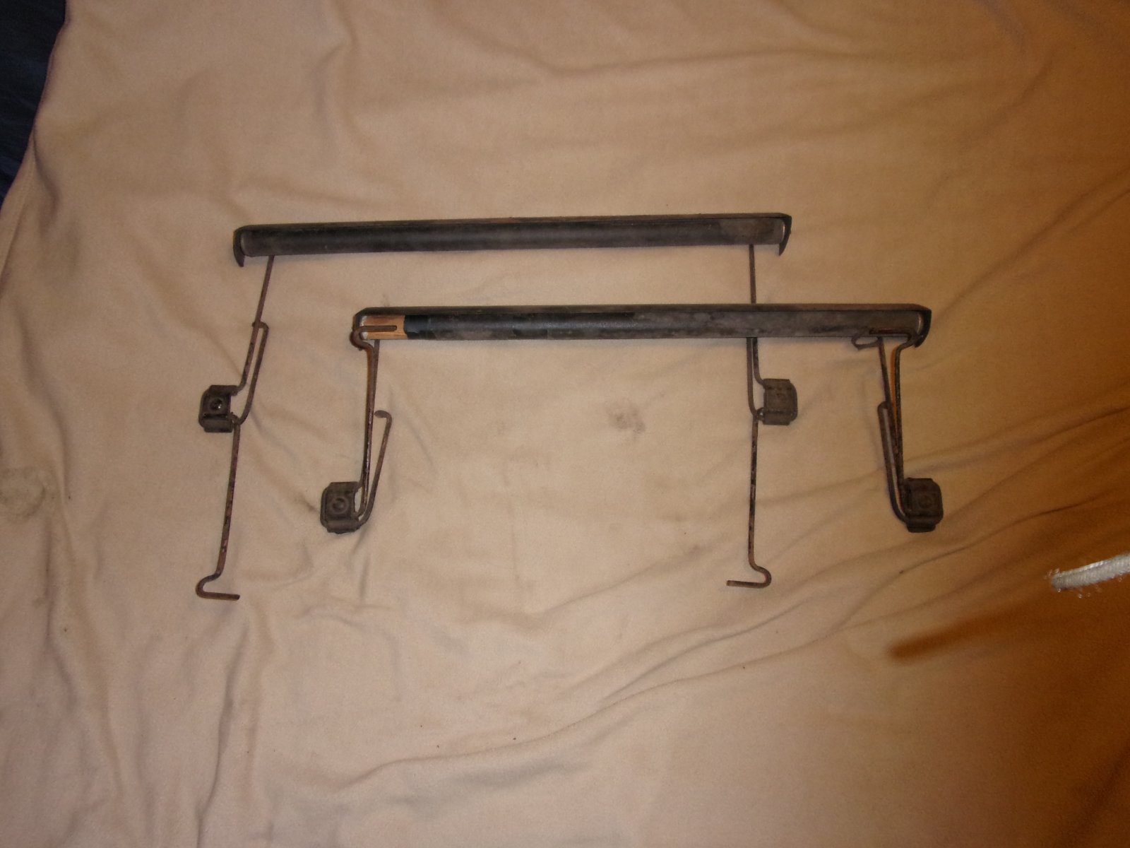 In the parts bin with my T stuff, so it's as good a starting point as any. Approx 23" in width, roller springs still retract under tension, small scraps of shade material felt like very brittle black in color. I believe I have four brackets for these as well. Don't know if they are Model T, or even automobile related, but if anyone want s them, pay for the trip and they are yours.