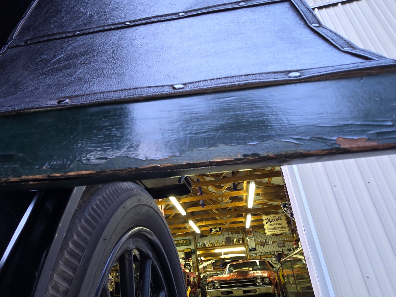 Great conversation and thanks to everyone who has replied. I've been searching a little harder and I have found some spots that have "green under green". The largest area is the wood at the bottom of the doors where the top layer is flaking off. I have found no dark blue anywhere but have found black inside the body - such as in the seat wells. I also found some dark green under the top layer of paint on the wood spokes. But none of what I found was enough of a quantity, nor undeniable proof that this car was originally green. The one thing I don't like about my photo's above is that the phone camera makes it look much lighter than it really is. It's a very dark - almost black - green. The shade is such that it could be a direct counterpart to the blue - almost black - color of the era.