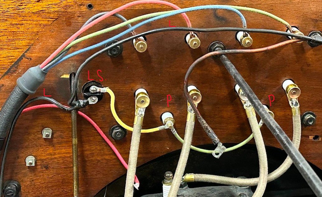 Thank you all so much for your help. As you can tell, I'm out of my depth with electrical matters even though I am learning pretty quickly. I just had a long phone call from an old pal in the Orange County Club who is an electrical sort. He went over some troubleshooting basics and as some of you have pointed out, the confusion I caused by posting that picture of the firewall with the wires all ahoo because I had moved on to other electrical work. The pictures below ARE representative of the way it was during the test.