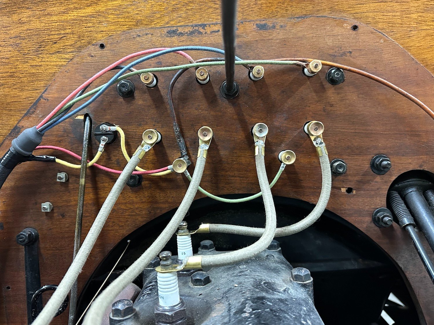 Someone later installed a 1918 engine with starter & generator. Also the lights were electrified at some point. So now the BAT post has a wire coming from the battery, another coming from the cutout and a third going to the electric light switch. I just added a jumper wire to the MAG post to allow the motor to run in either the BAT or MAG position. The magneto wire has been removed.