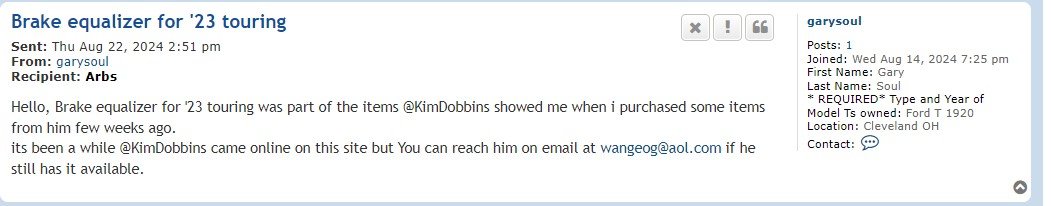 I think the administration does do a really good job of patrolling the bad guys. I don’t run into them 99% of the time, but I will call them out when I do. Aside from the broken structure of the sentence and odd identification of a site member, I also know Kim’s correct email, so the one presented was a scam. Then I looked at how long they had been a member( 1 week) and no. of posts (1). It all adds up to being dishonest. I did receive a note from another member saying they had gotten the same message with a different respond email address. So if something doesn’t look or read right, it usually isn’t. I had one offer of parts I was looking for but could not get pics sent to me. Then another offer from the same guy, but again no pics. Then they disappeared.