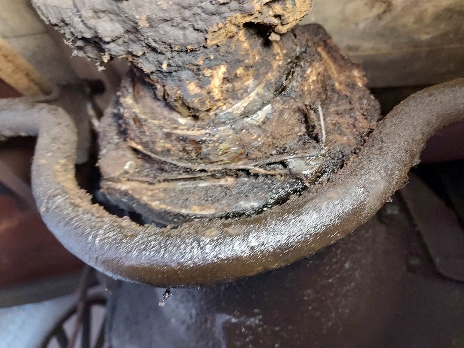 100 years of dry grease and dirt was hard like asphalt covering the fasteners.