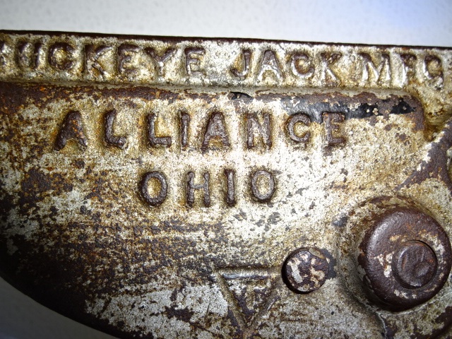 Ford started supplying jacks in 1913, along with a top boot. It was a two piece (jack and separate handle), and is pictured on the right in the photo of the two jacks with the prominent FORD markings (silver colored). The other one in that picture is a Buckeye #3, and was sold by the Buckeye Company and advertised in early Ford Times magazines. Buckeye was originally in Louisville Ohio, but moved to Alliance, Ohio on January 1st 1910. I believe the jack pictured is marked Louisville (belongs to Kim Dobbins). I have one marked Alliance.
