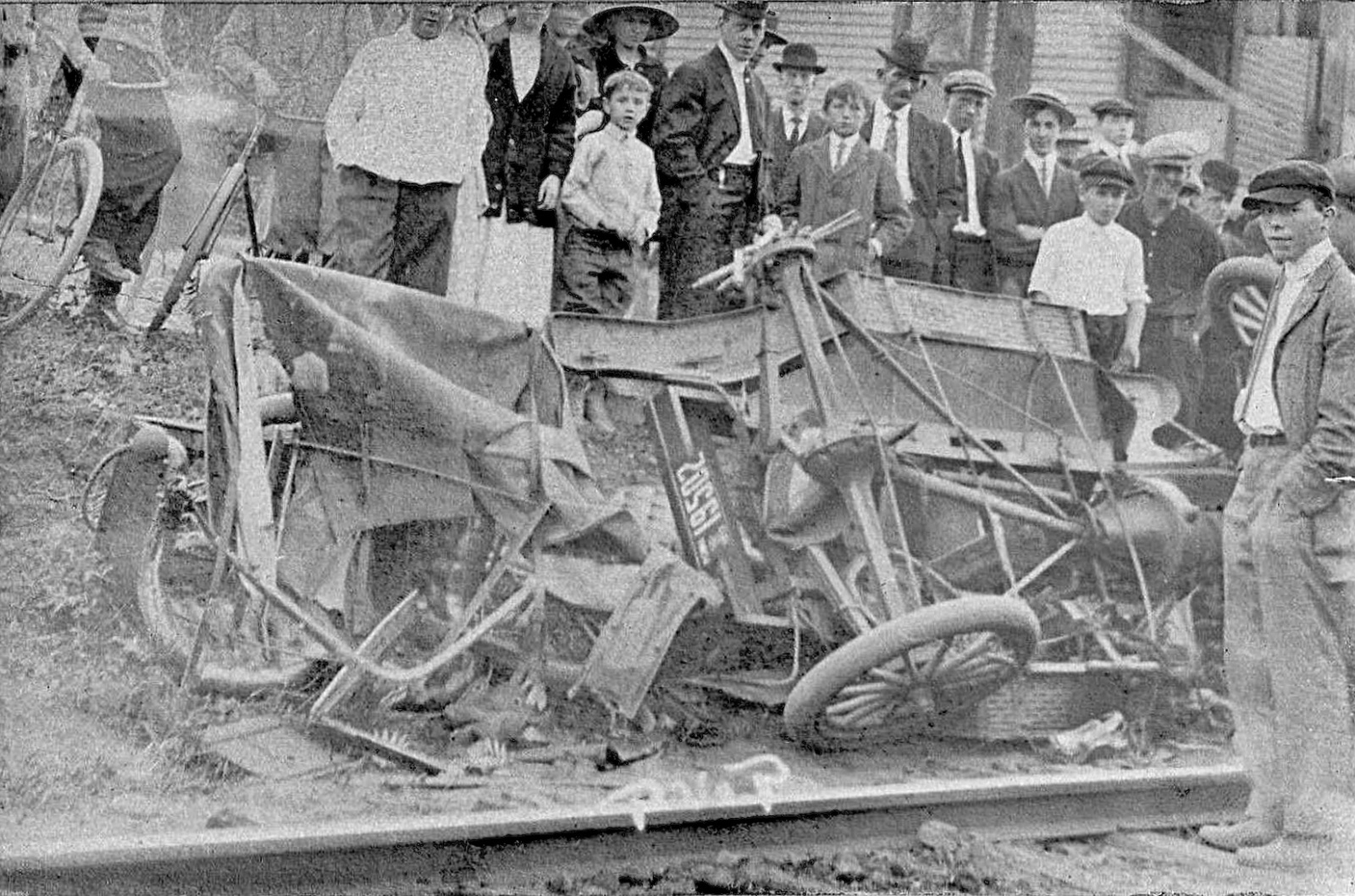 (In the book "Excuse My Dust" about life in a small New York State rural town, the author reports on conditions at the local livery stable, from the proprietor having full stalls all the time, to being down to just a few horses in stalls near the end, and liquidating his coaches and wagons that he had previously rented out, and the time table was only 5-6 years, probably from 1905 to 1910. It is an EXCELLENT book, and the author, who was a lawyer in the town, recounts a LOT of interesting stories about early motoring, and it's effect on the town. For one thing, the residents fought very hard to keep the main road out of town, and later regretted it, as they were bypassed, and they never recovered economically from that. Being a lawyer, he knew most of the important residents of the town, and many of the simple people as well, and his love and affection for his little town are quite evident on every page. He recounts an event similar to the first picture in this series, where a farmer and his team were killed by a train at a crossing. This apparently was a quite common occurrence. He also recounts the many characters that lived in his town, and some of the town drama that arose as well. It's a book well worth reading, as the author was a firm auto enthusiast, and the whole book is written from that standpoint. I imagine nearly EVERY community in the U.S. went through the same growing pains and changes, but most were probably not as well documented as they are in that book.