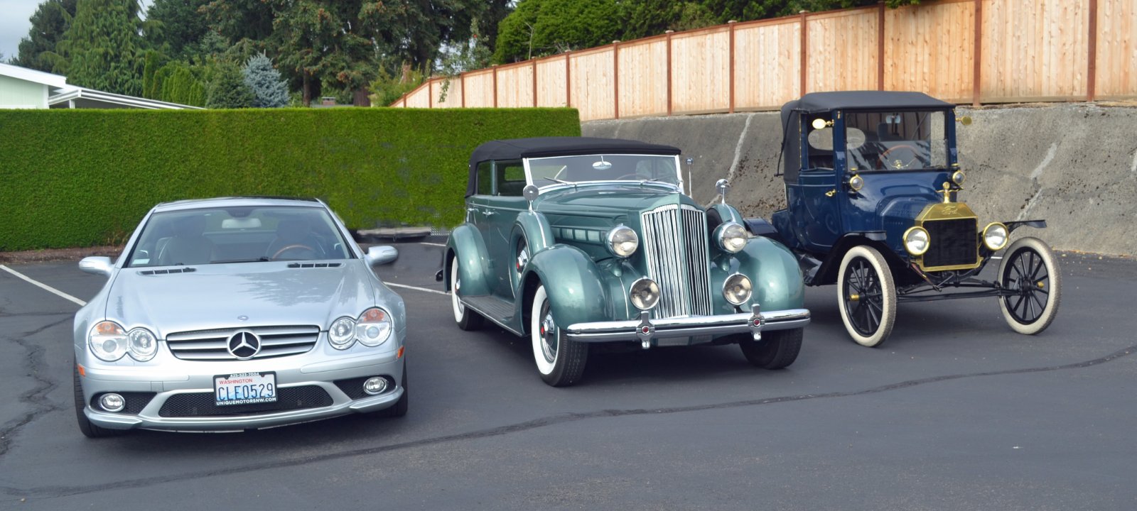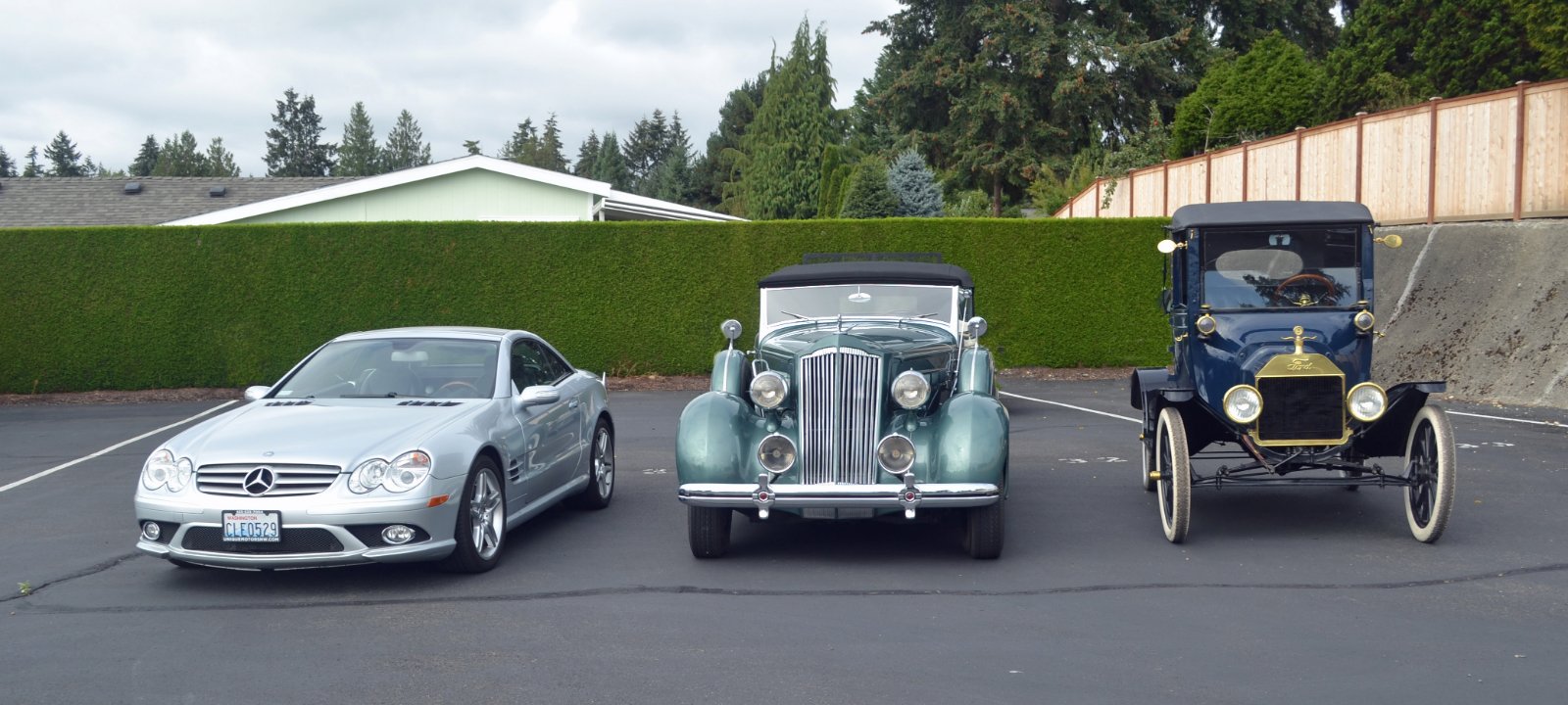 I own a 1936 Packard convertible sedan, a 1916 Model T coupelet, and a 2007 Mercedes Benz SL550 roadster.