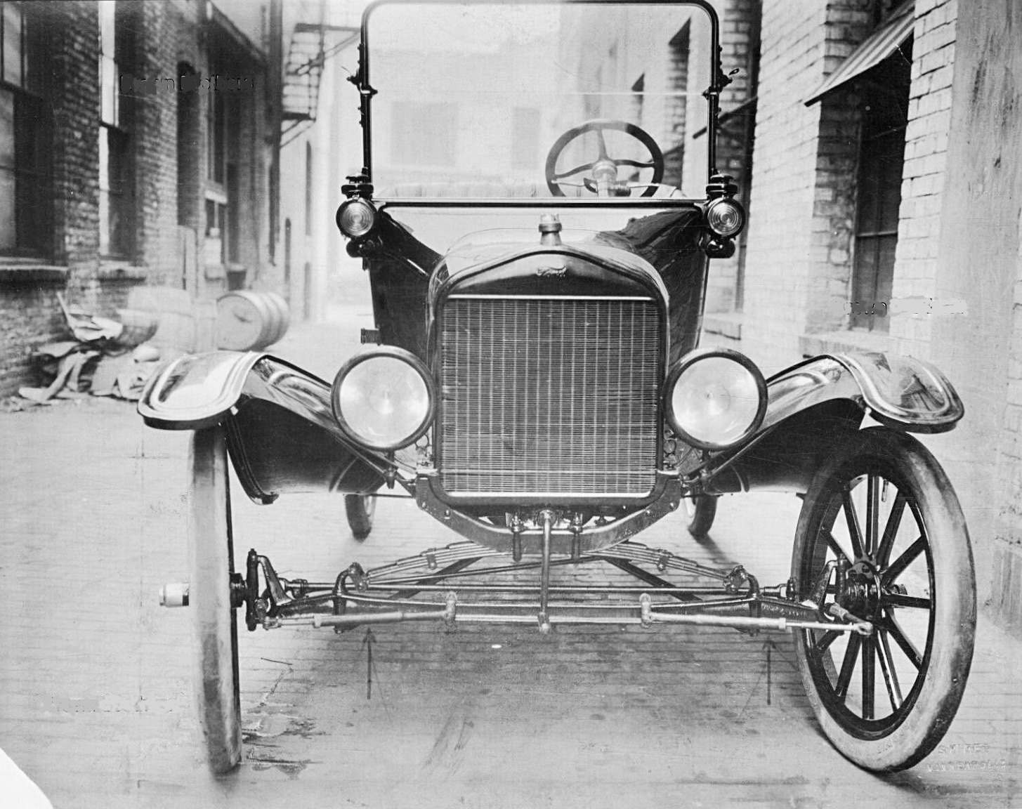 It appears to be a fairly early (maybe?) 1915 runabout, photo probably taken in 1918 as indicated by the "bell" on the California license plate. The car is showing its age already, pretty normal for the era. The top has been replaced with a later 1917 style top covering, can't tell if the sockets are original or replacements.