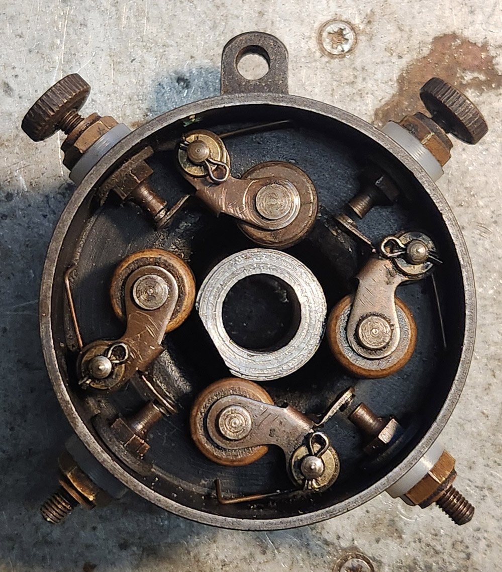 Another failing of the ball bearing races used as timer rollers was with the outer race on the bearings. When you think about it, ball bearing races are st held stationary in use, with the balls turning between them. When used in a timer the outer race wipes/rotates on the timer ring, causing undue wear on the outside of the assembly.