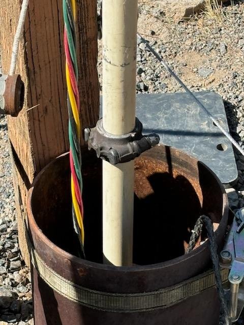 The pipe is in 20 foot section and I could only pull 10 feet at a time, I found that a Model T connecting rod would clamp on to the pipe. So with 2 connecting rods I was able to pull 10 feet up clamp on with the other rod and move the first rod down and pull up the next 10
