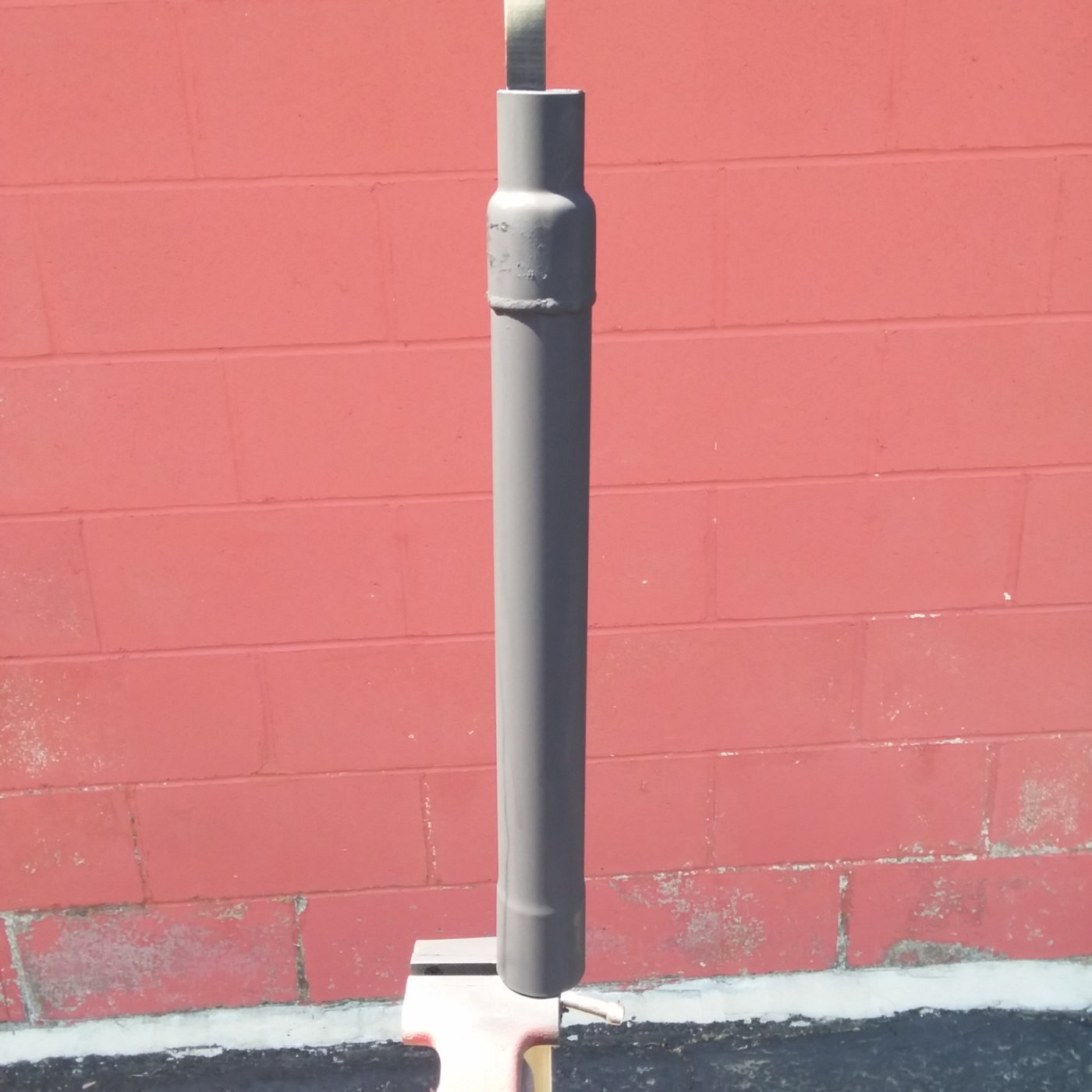 side inserted and welded to the exit end of the two inch pipe. These three parts