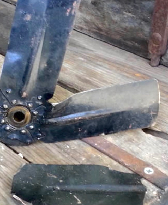 A photo like these (angle shot). The upper one appears to have had the front plate brazed to the shaft. In looking at the picture you sent looks like tha plate with the blades may have been brazed or worse JB Weld