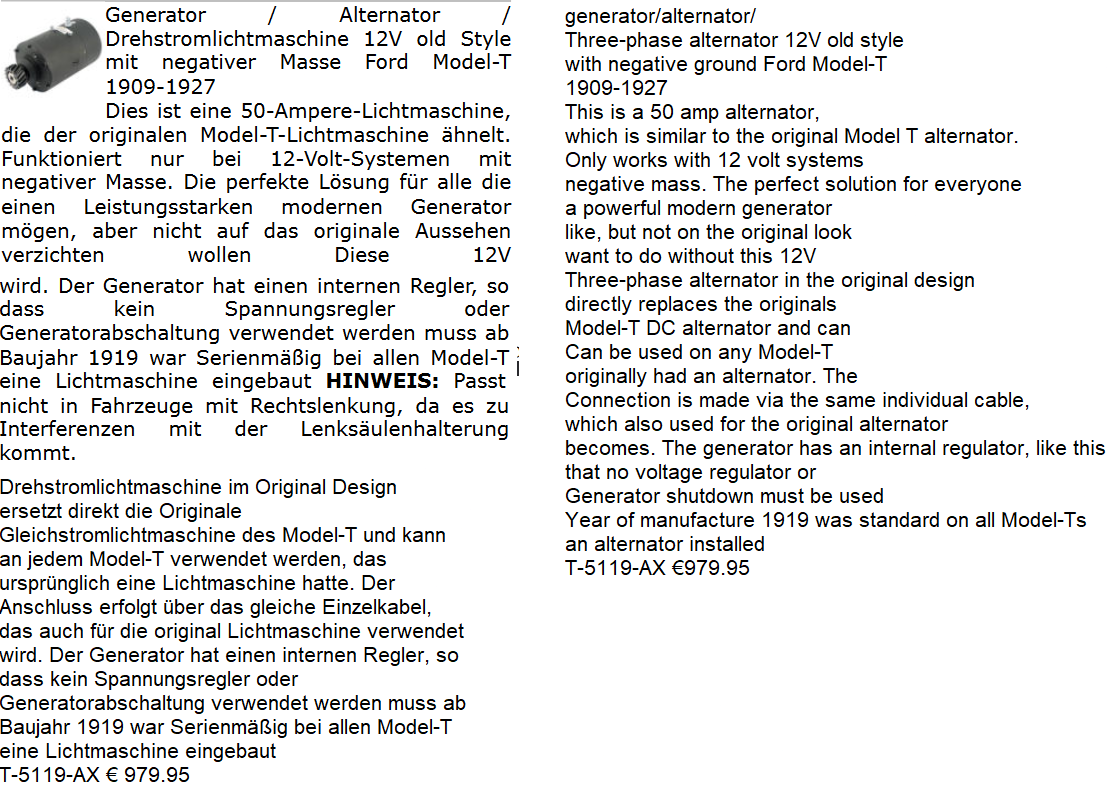 TUCKETT BROTHERS has no Model T section - has lots of generators (12v) etc listed (competition?)
