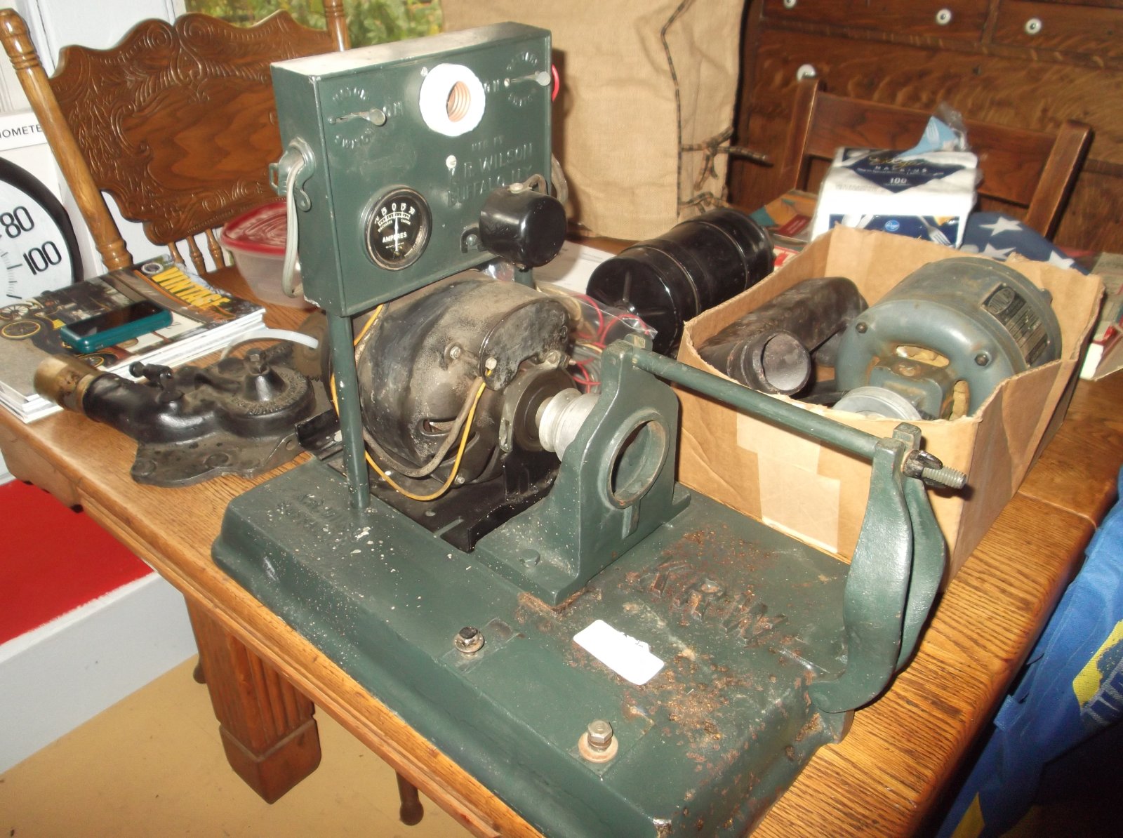 Polished and reinstalled the carburetor adjust rod, carburetor pull and commutator pull rods, found and installed a proper four wire loom, removed and serviced the fan assembly, reinstalled with a leather fan belt, reinstalled radiator, started her up on three quarter pulls and went to supper.