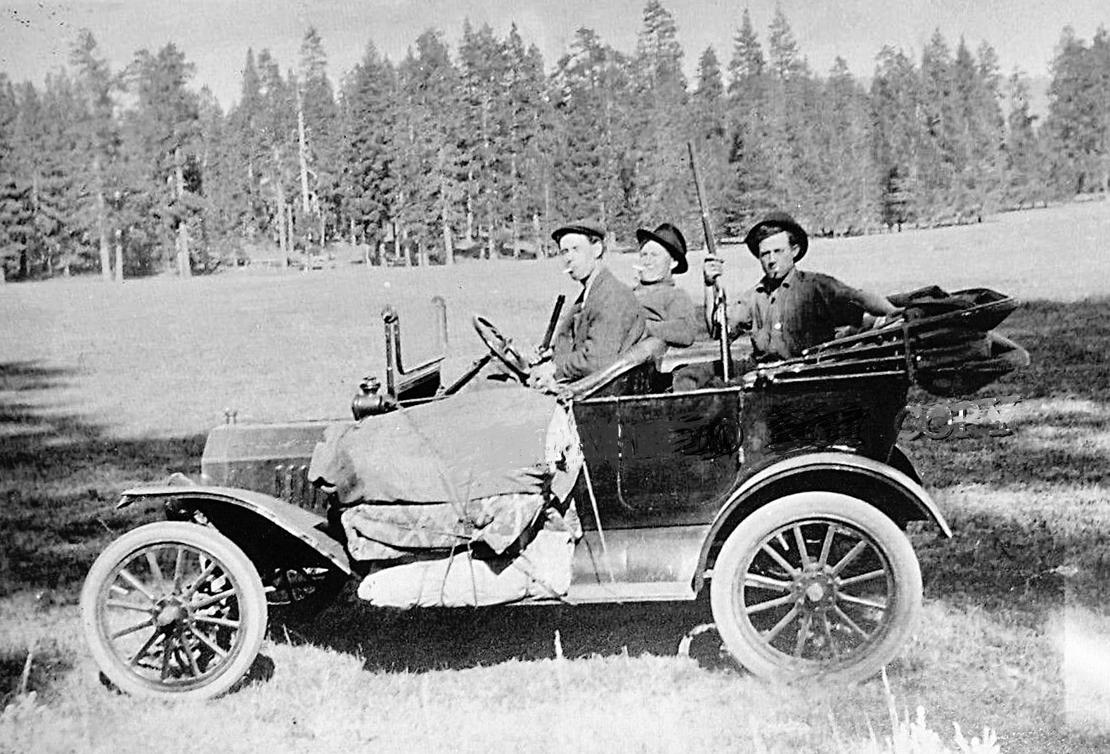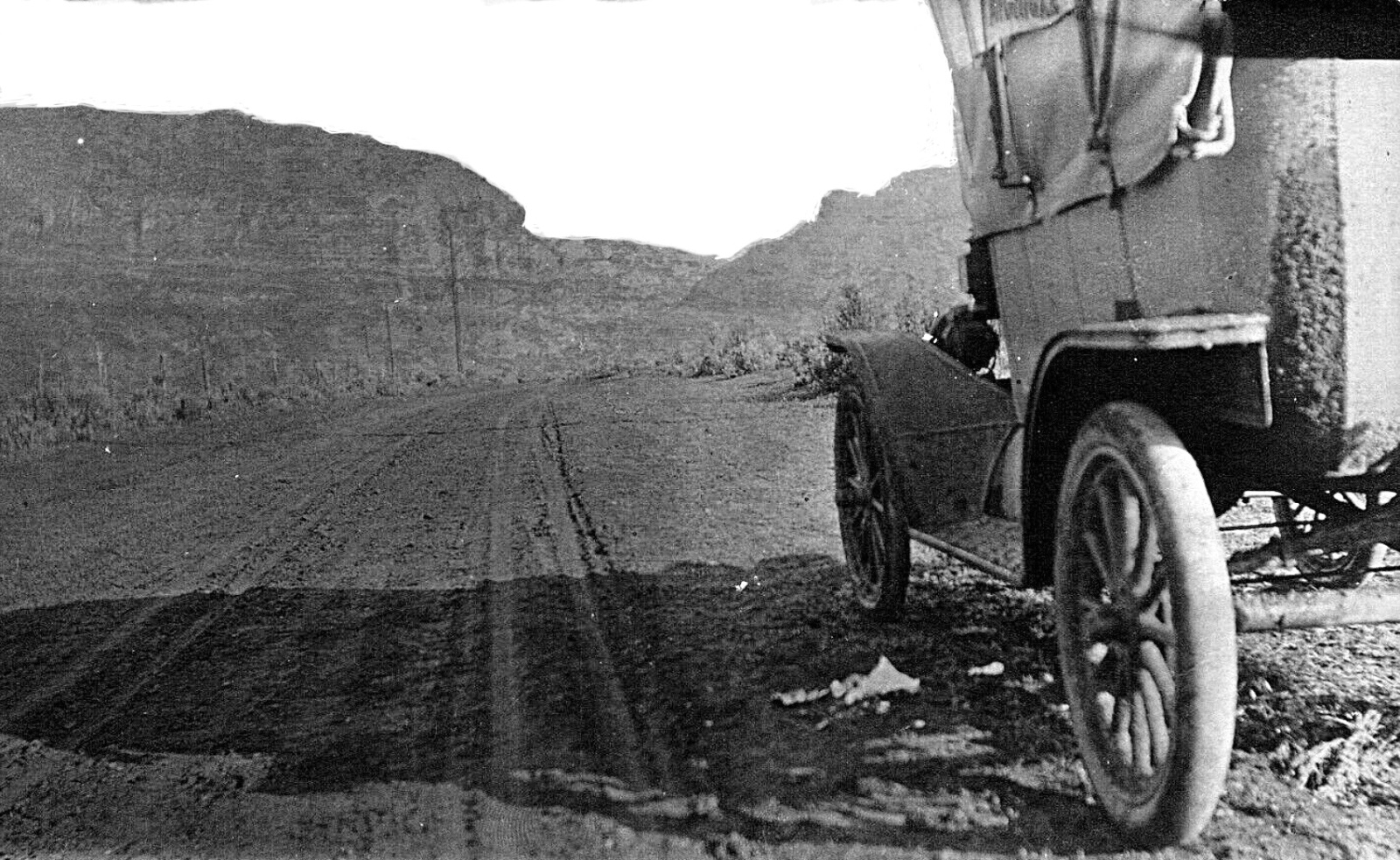 The first photo is in a mountainous area for sure. Looks like there is a fence or the remains on one side of the road and maybe?? a phone or telegraph pole. Intriguing picture from 100 years ago before any development. The Touring looks like a 14?