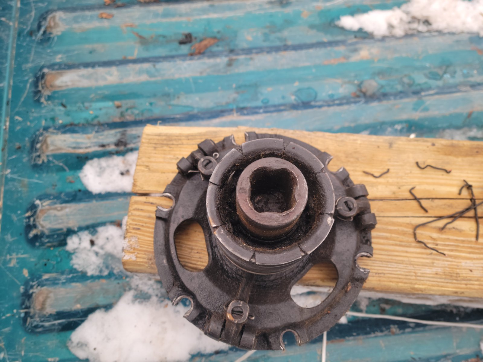 Nasty worn u-joint drive. Must have had a warford with the smaller square shaft or equivalent non OEM drive.