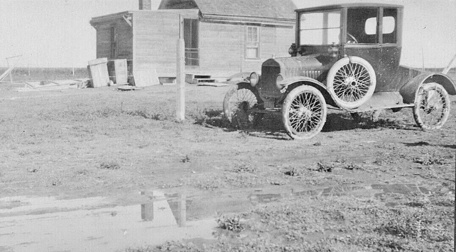 The first picture appears to be a 1923 or 1924 roadster with a nice after-market build wooden pickup box. Notice the oil sidelamps again, also an oil tail-lamp can be seen under the far side of the box, indicating a car without the electrics package upgrade. Also it appears to have wood felloe non-demountable wheels, so likely a loss leader cheapest model roadster, making for a practical light duty delivery truck.