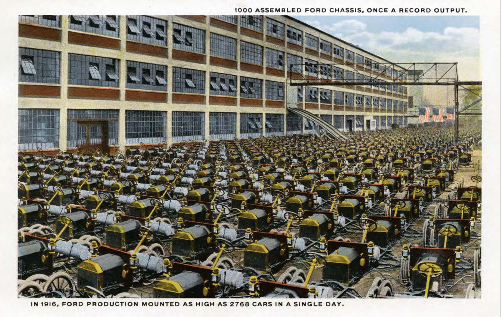 I remember i saw a picture similar to this, but it was with all of the workers in front of the ford plant. It was used for many years and each time they changed supposed number of employees shown, but used the same picture.Steve Jelf wrote: ↑Mon Nov 25, 2024 1:17 pmIn the photo of a yard full of chassis the caption tells us of 1916 production. But the cars shown are earlier, not 1915 or 1916. What are they? 1913? 1914?
