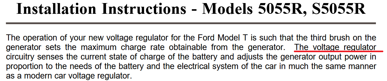 WARNING!! - This voltage regulator is for use on standard Ford Model T 6 volt negative