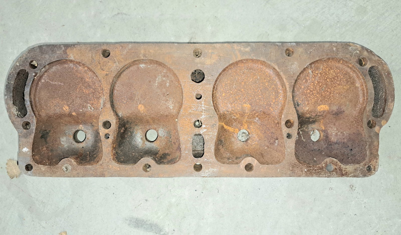 Mark, your find is like the black one of Ed's. Note the recesses in the casting near the plug holes along the riser for the water outlet. There looks to be two different ones with similar combustion chambers.