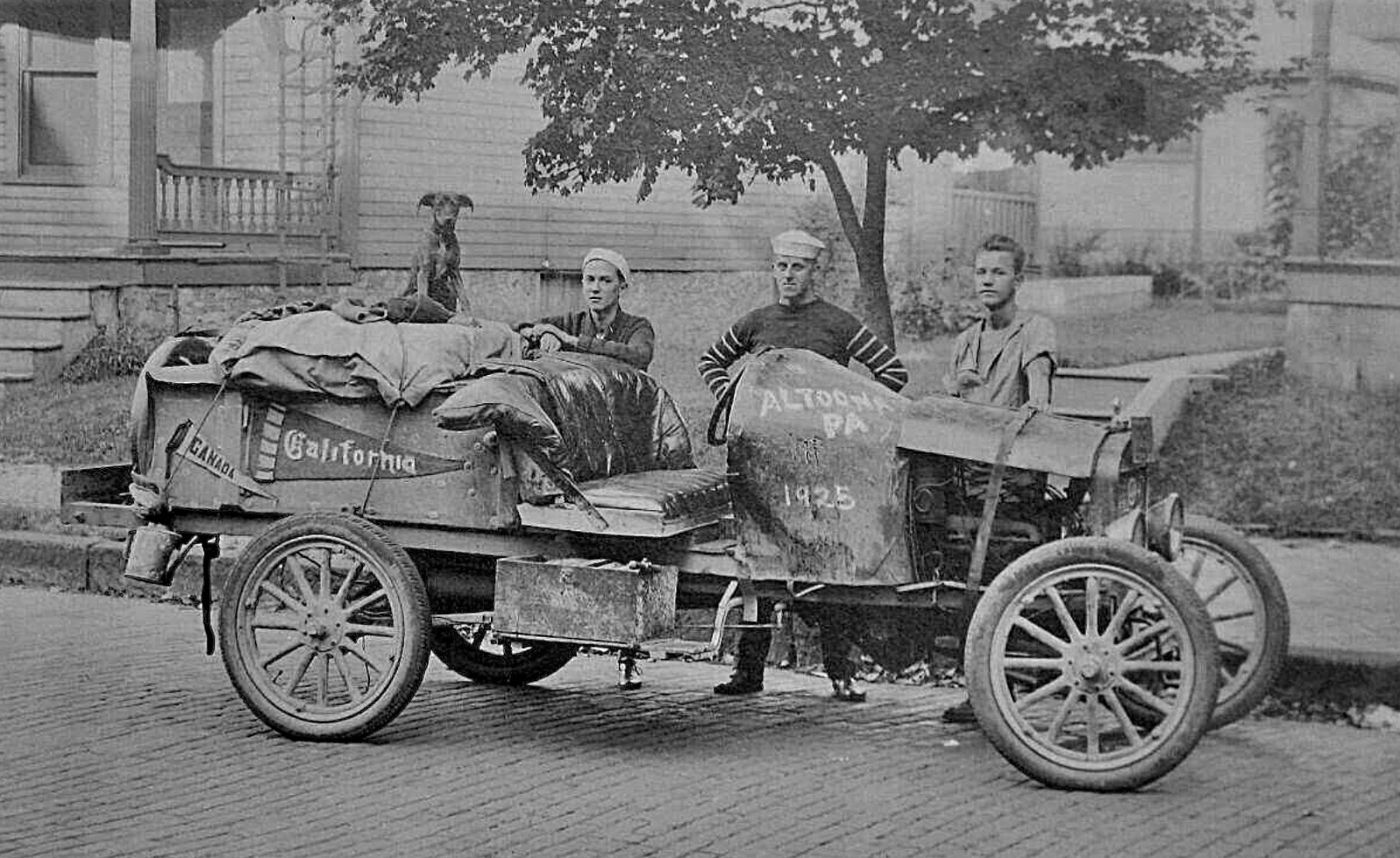 I’d sure like to know the back story from those fellows who drove from Altoona PA to California in that homemade ‘hoopie’. Did they make it ? Where is the gas tank ? They lowered the steering column. Did the dog stay on top of the tent ? Thanks Tom; for all your era photos.