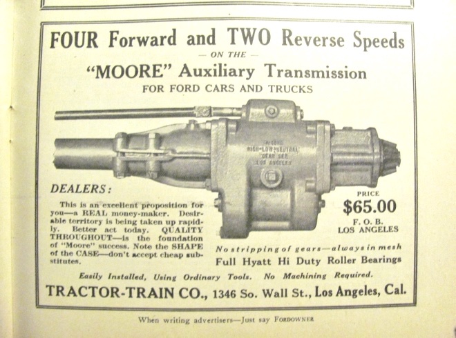 I have a sneaking suspicion that My Moore gearbox in my roadster buckboard was made by the Tractor Train Transmission Co. I'll have to get under the car to check.