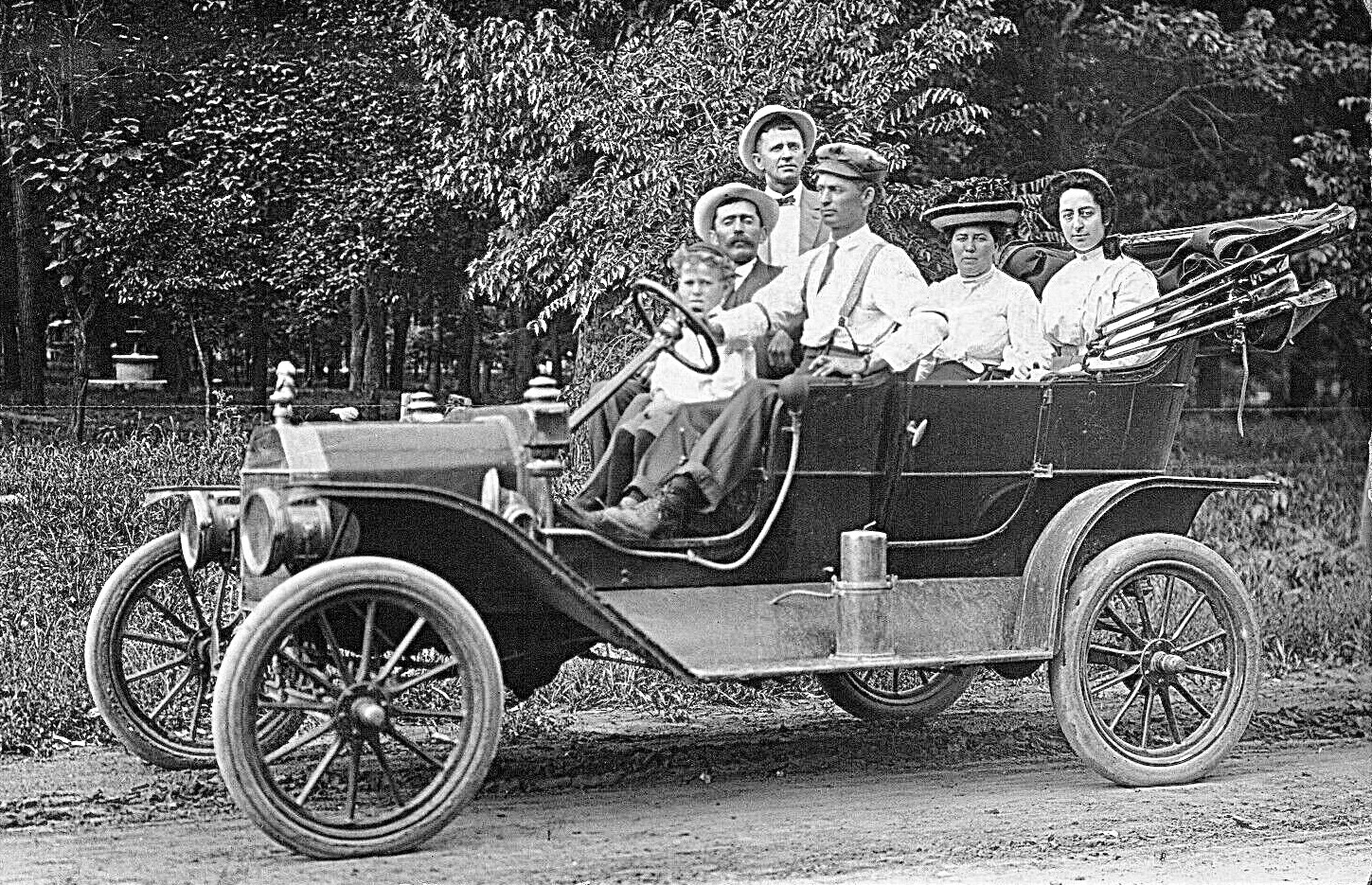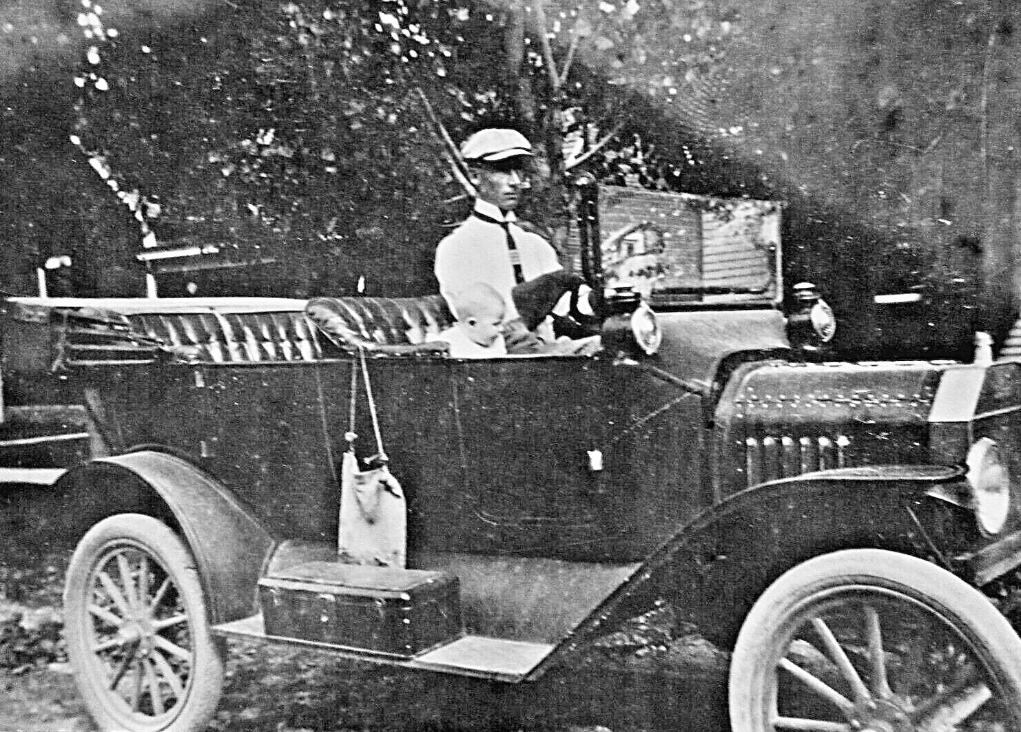 The first picture appears to be a mid year 1909, single lever, still with the early "two bolt" front body bracket. I cannot usually tell in a black and white photo if the car is red or green?