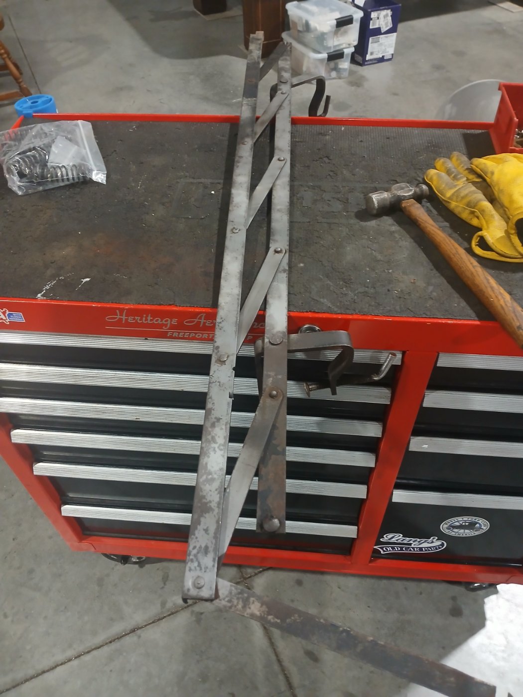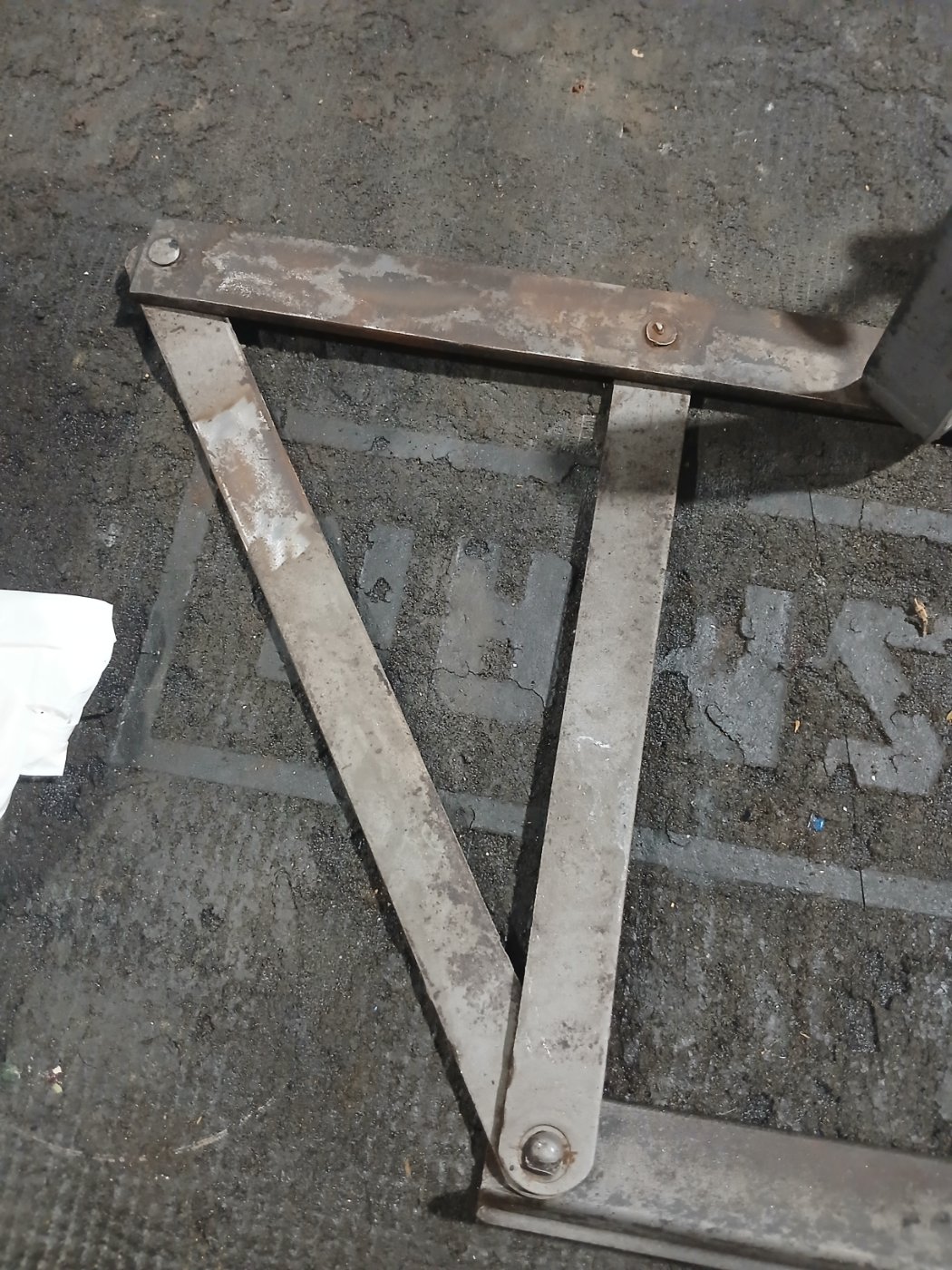 Austin, one end of the diagonal must detach if the thing is to fold. Perhaps in its past the detachable end has been fixed permanently in position. Check that all the rivets are consistent, looking for some difference in one at the diagonal strut end.