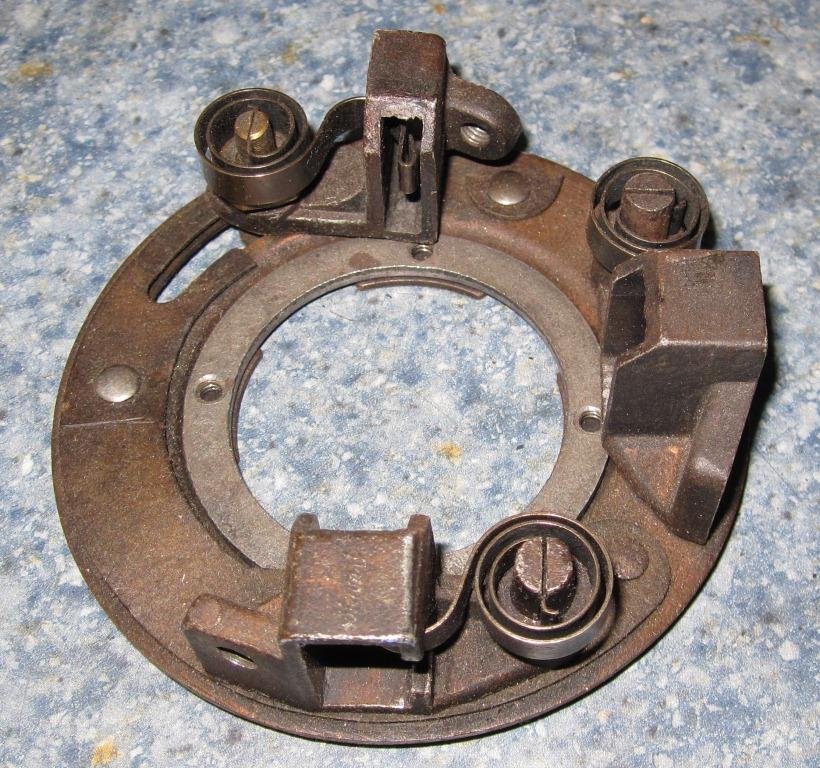 The unusual sliding brush caught my attention. Its adjusting bolt is also the spring anchor. When I tried to install a new insulator, I found the plate is also different. I assume I can enlarge the slot and drill another hole, but I'm wondering where this plate came from. Fordson?