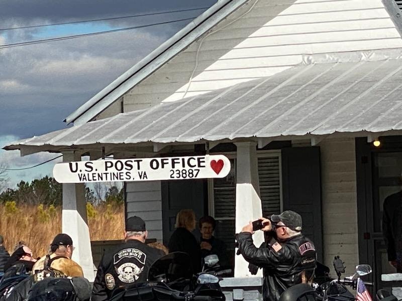 The Valentines post office is inside an old general store and this time of year is visited by group after group of motorcyclists and old cars in order to get the heart shaped postage mark.