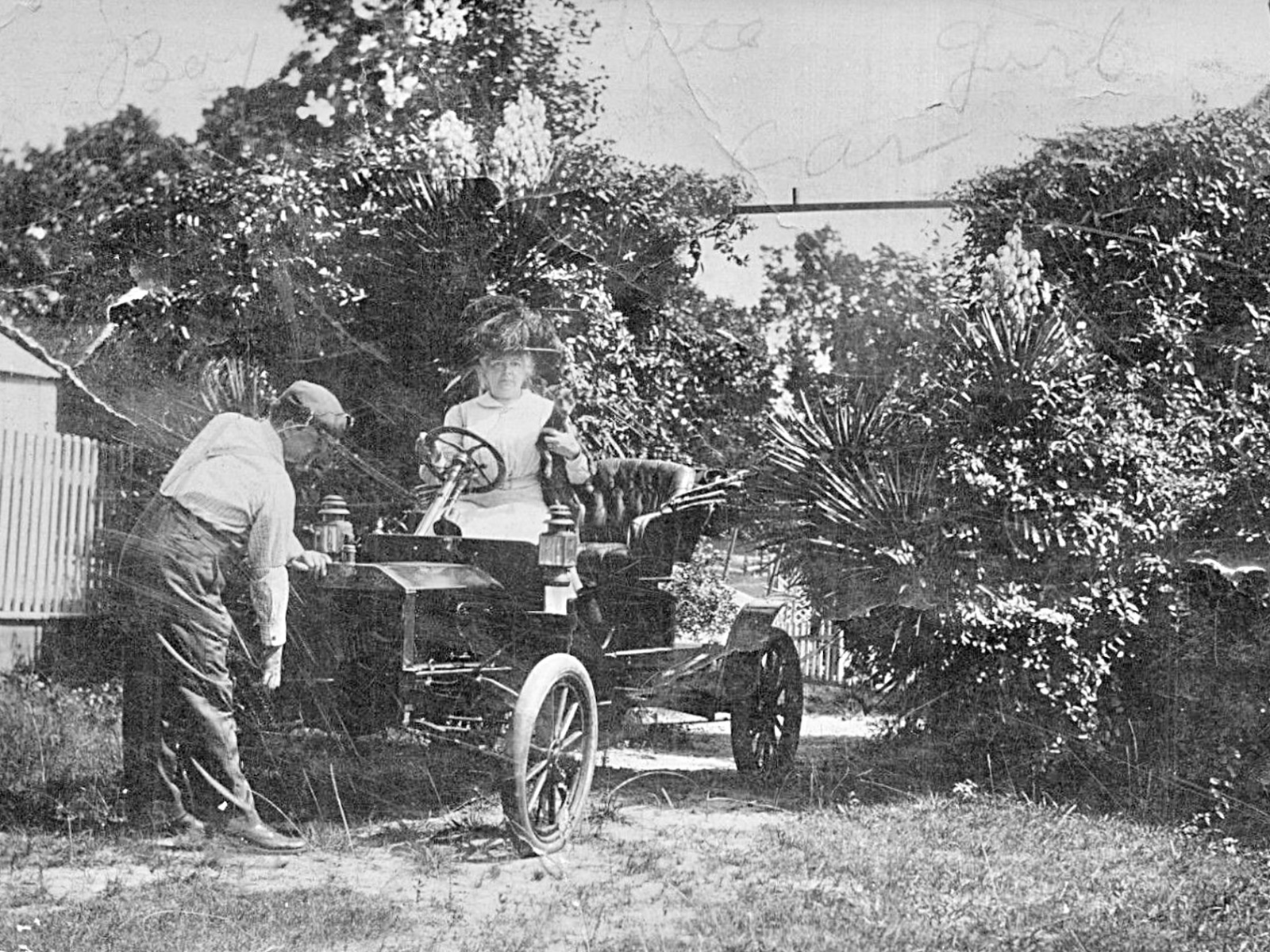 #10 - I’d love to know the story behind this photo. New-looking 1913 with electric lamp conversion (for the side lamps too, maybe ?). That tent is going to be there for the season, with a wooden floor. The two gents look pretty comfortable, and the saddle horse has a real solid ground tie !