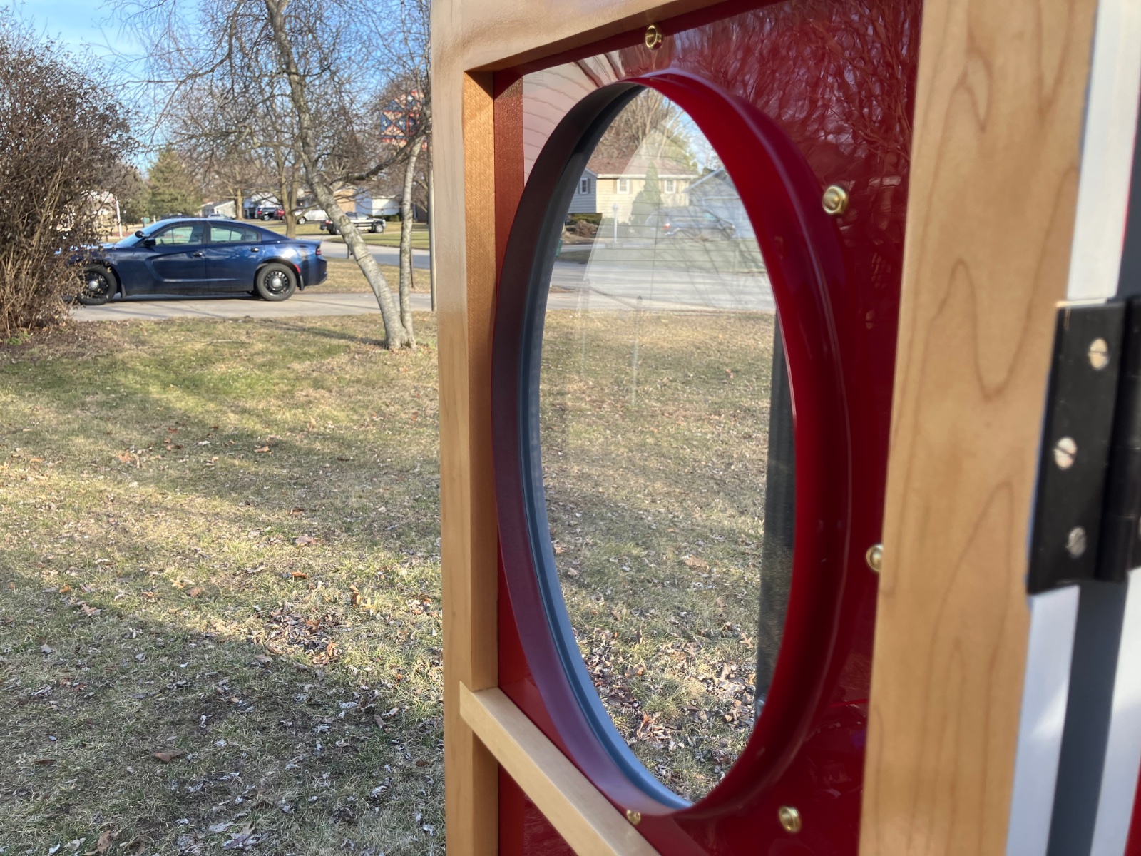 Yes I did make the window frames. It was a nightmare trying to find ones. Oval frames are not as popular as they once were. I did find a company in CA that made frames and I asked if they were wood they said yes. I ordered a couple and upon arrival they were MDF… so I made a CAD drawing and cut them out using a CNC machine. They are 11x14 and made to the dimensions of the glass drawing for the delivery car.