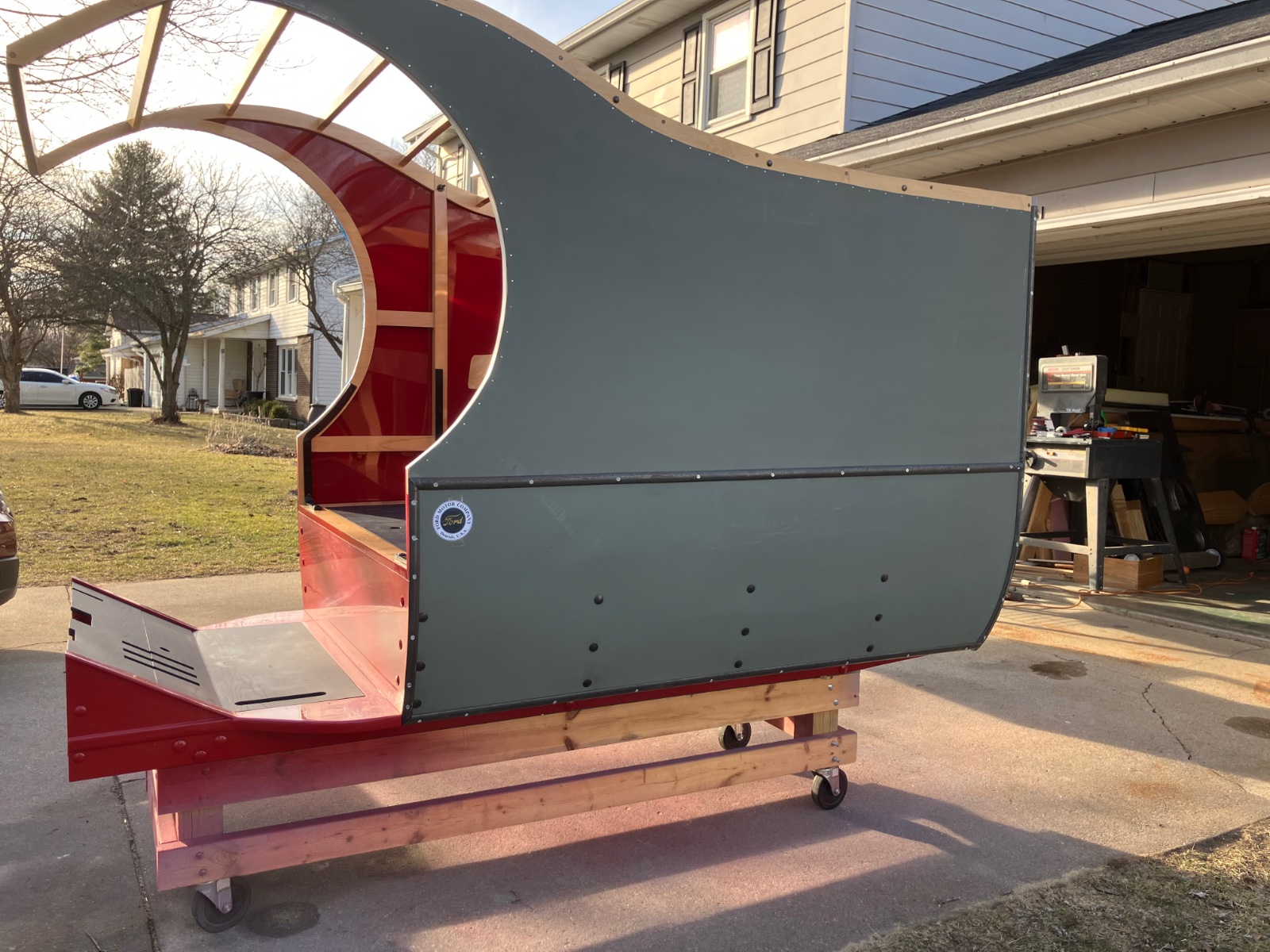 Made some more progress. All the metal panels are now fitted and I began working on drilling the holes for the step bolts to pass through the metal for the interior braces. Next I will be drilling several 1/16” holes along the perimeter of the panels for the body nails. Last thing to do before I can permanently mount the panels will be to prime and paint the inside of the panels the red body color.