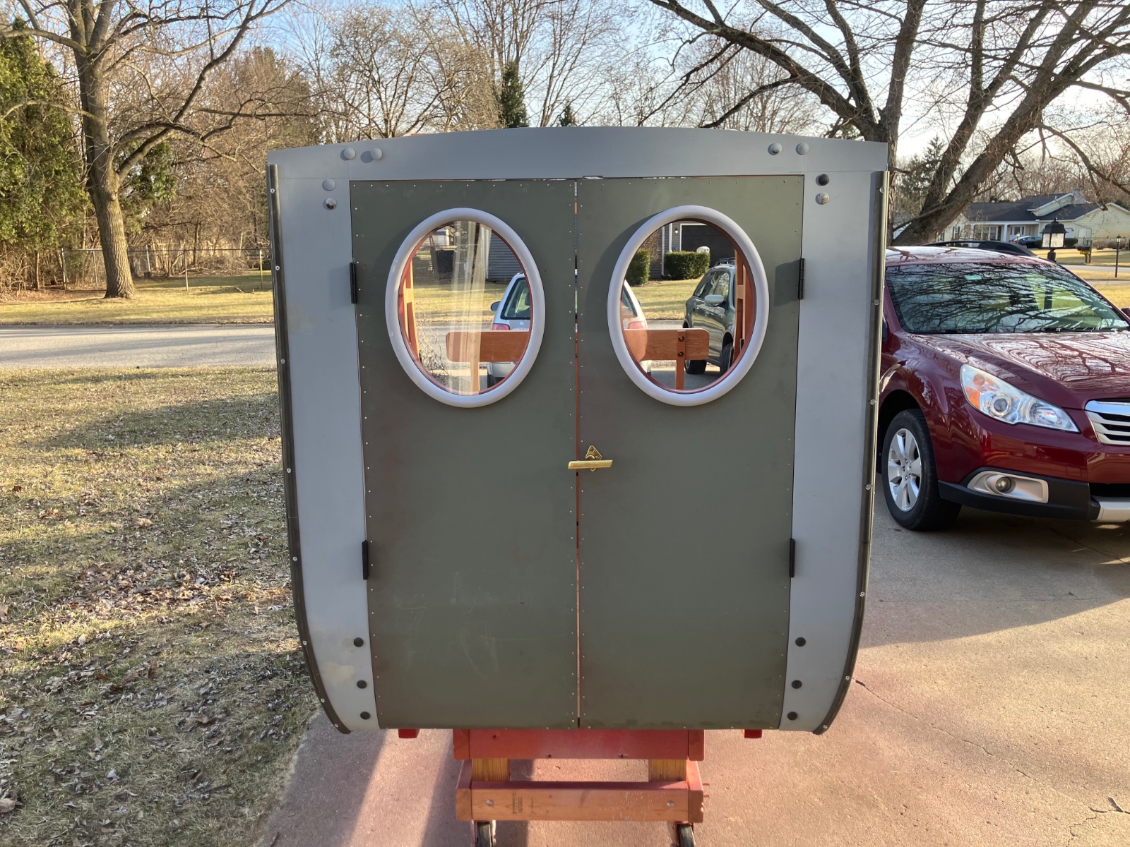 It’s starting to get cold here in IN which means I need to start working ahead when I can to stay focused and keep the end goal in sight. Tonight I started laying out some patterns in poster board for the metal skin. Also figuring out how all the exterior moldings intersect and cover the metal seams.