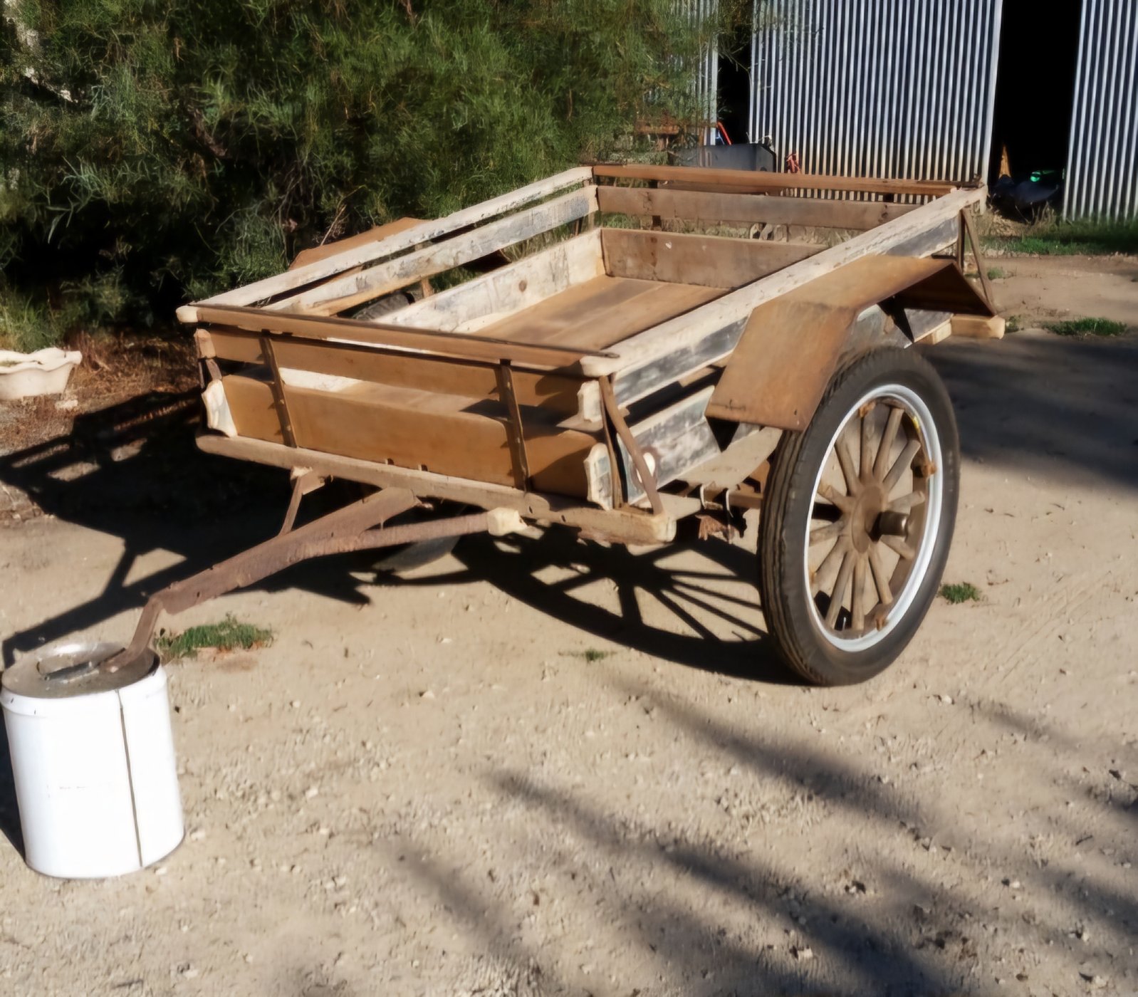 I replaced a couple of boards, spliced another to a broken side, and have left it as it was. I just need to make a hitch to tow it behind Henrietta. The drawbar is actually a model T frame rail.