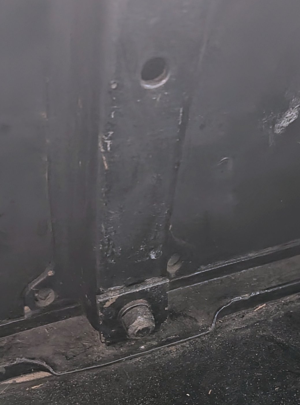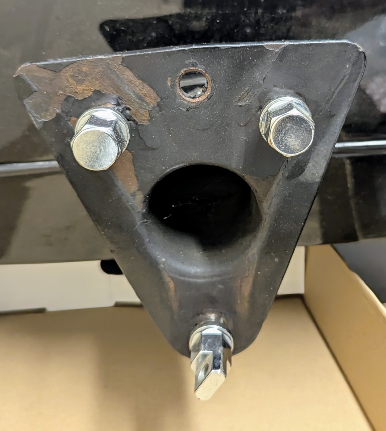 Good friend from another state sent me a picture of the inside top attachment of that spare tire carrier. He did not have picture of the lower attachment but I'm sure it's very similar with the thick rectangular block, lock washer and nut to secure the bolt.
