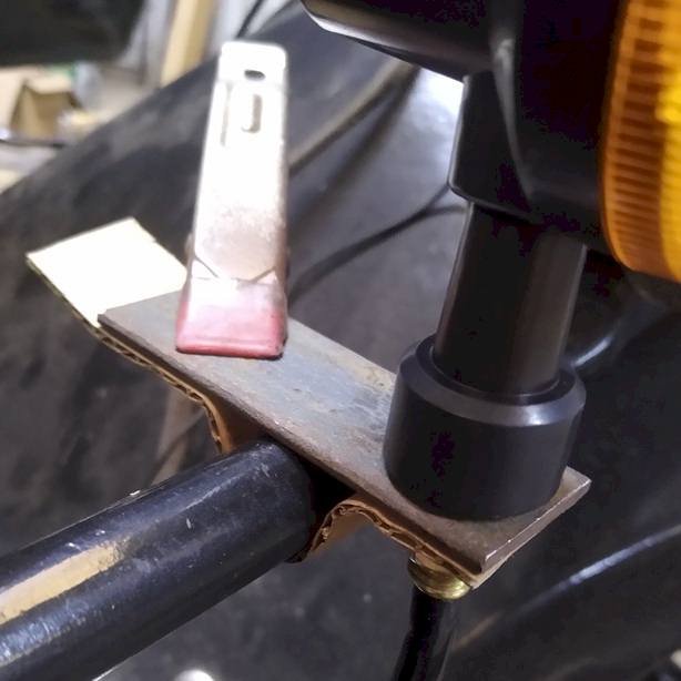 With the turn light mounted in place and a piece of cardboard, it's time to mock up the lower brackets.