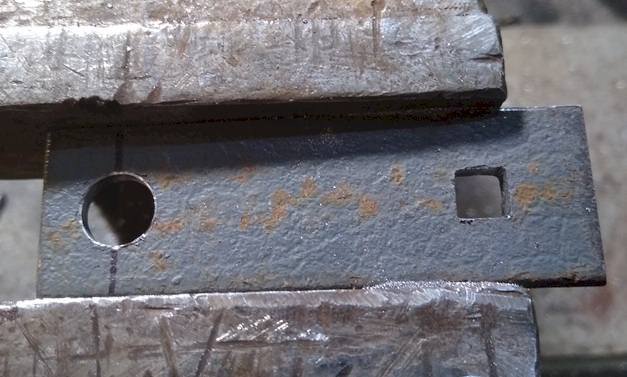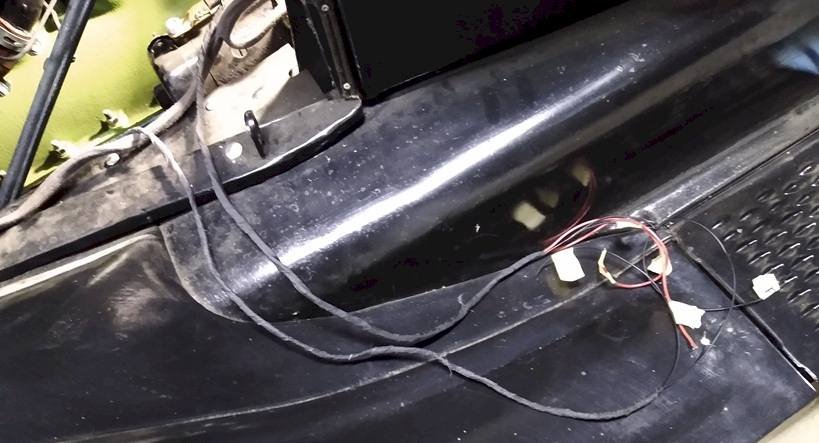 Drilled a 5/8" hole above the steering column for a rubber grommet and used a worn out grinding disc to de-burr both sides.