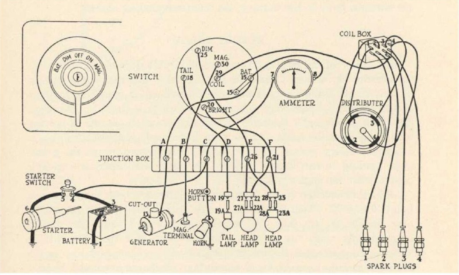 Since this car has a dashboard with light switch and ameter, I don't believe It should have had a switch on the coil box. The connections internal to it became loose and started causing issues but the modern lock my late cousin installed on it couldn't be removed without destroying the box, sadly. It has a starter that only succeeds in becoming very hot so I hand crank it but otherwise runs like a top. Any help/advice would be greatly appreciated. Thank you