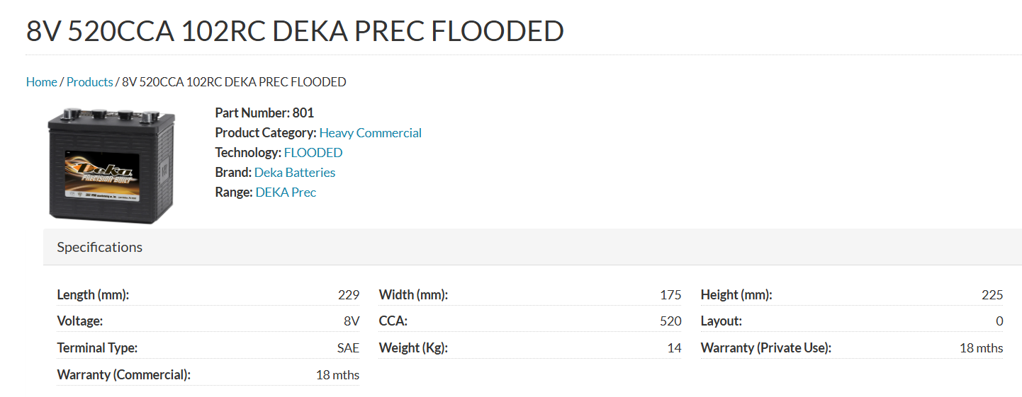 Car's with starters should use a "starter battery". These are designed for short, high burst of energy for a starter. "Golf Cart" batteries are designed for long, lower-power discharge to power an electric motor and accessories over longer period of time. Voltage is an issue by itself and doesn't indicate battery type per seGeorge House wrote: ↑Tue Apr 15, 2025 8:00 pmSince we’re on the 8 volt battery subject; where is the best place to acquire one ? And do you use a golf cart 8 volt in your antique car ? I’ve been trying for well over a year to make a 6 volt positive ground battery work in my 1950 Ford - to no avail. Traveller 6 volt batteries from TSC are junk. Been through 3 batteries and 3 starter motors. Found a possible 8 volt at NAPA for $219. Batteries + quit carrying 8 volt batteries and, yes, I’m using 00 cables, bought a new solenoid and triple cleaned grounding surfaces.