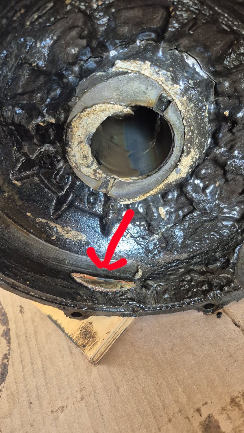 The babbit thrust bearing was dissolved to sludge... obviously 100 yrs worth of water/acid doing their job... but... also had a big chunk broken and embedded in the sludge....