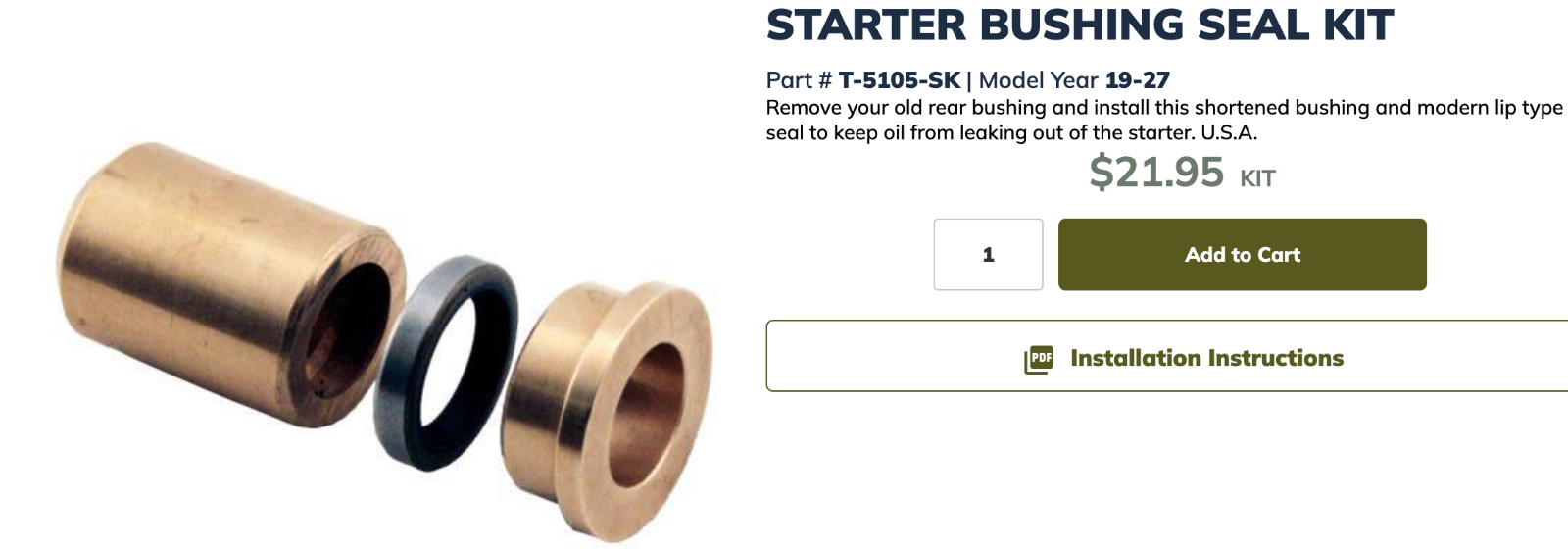 Even though the starter, generator, oil pan/block and access panels have gaskets, anywhere the bolt threads enter the crankcase or are exposed to oil, the bolts can still leak over time around the bolt heads by the oil seeping out through the threads. It is always a good idea to clean the threads of old oil and seal the threads of all bolts with something like the Right Stuff. The Right Stuff should also be used on all gaskets. oil can also run out through the square hole of the drive plate if the universal does not fit tightly.