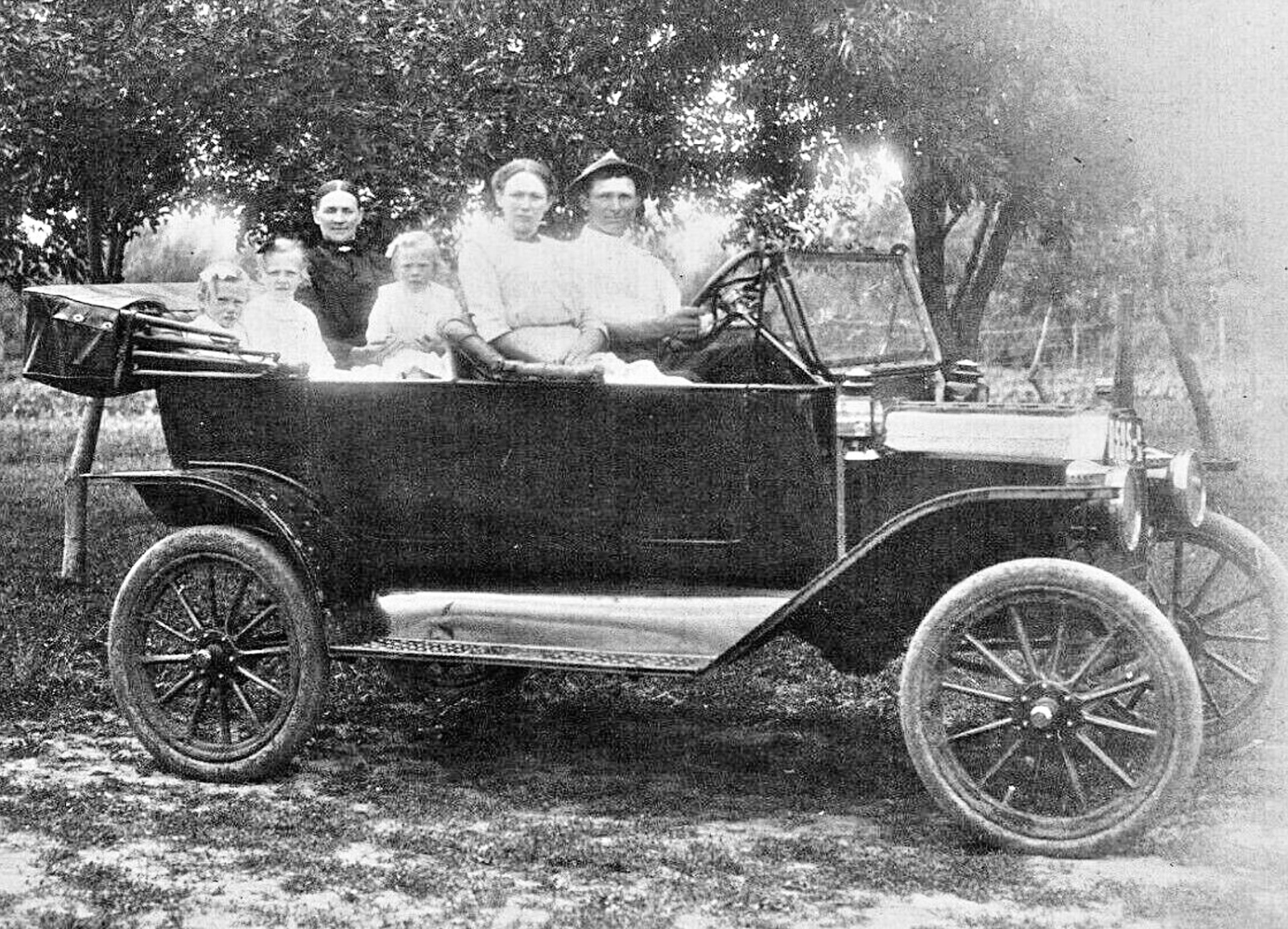 Photo fifteen appears to be a nice 1915 T touring car. I think it looks like brass trimmed lamps on there. A canvas water bag hangs from the driver's oil sidelamp.