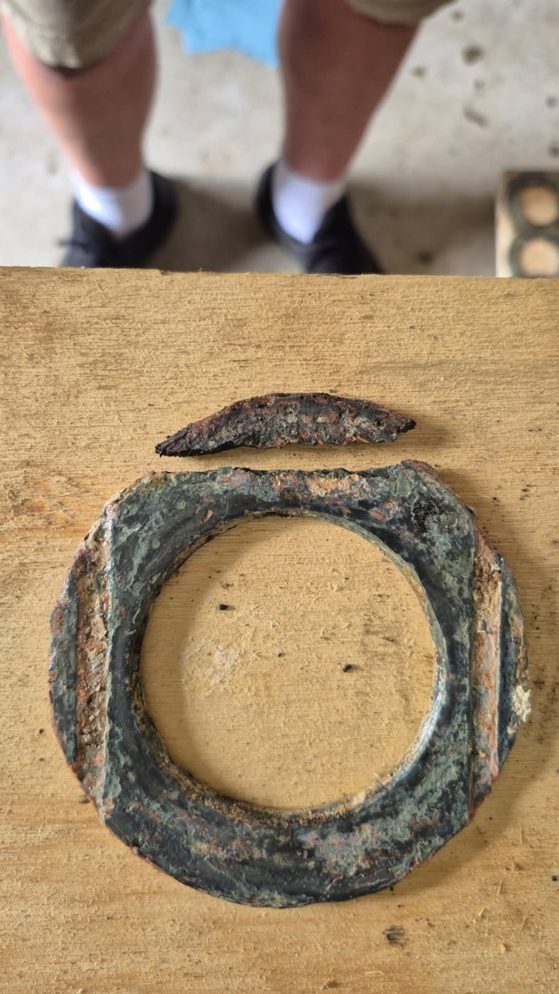 Being an early style diff carrier, the halves were attached via stud/nut, not bolt. While the nuts were cottered (with bent wire), all 3 studs were loose allowing separation of the case. No doubt why Ford redesigned to bolts. I wondered why the nuts weren't wired together in series, but not sure there was clearance to do so.