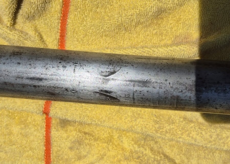 Here's some pics of the torque tube: I noticed something interesting on the tube, about mid-length, 4 equally spaced 'U' depressions, obviously some type of 4 point vice/grip. Not sure if these are manufacturing marks, or something else that occurred later. Anyone else ever see these?