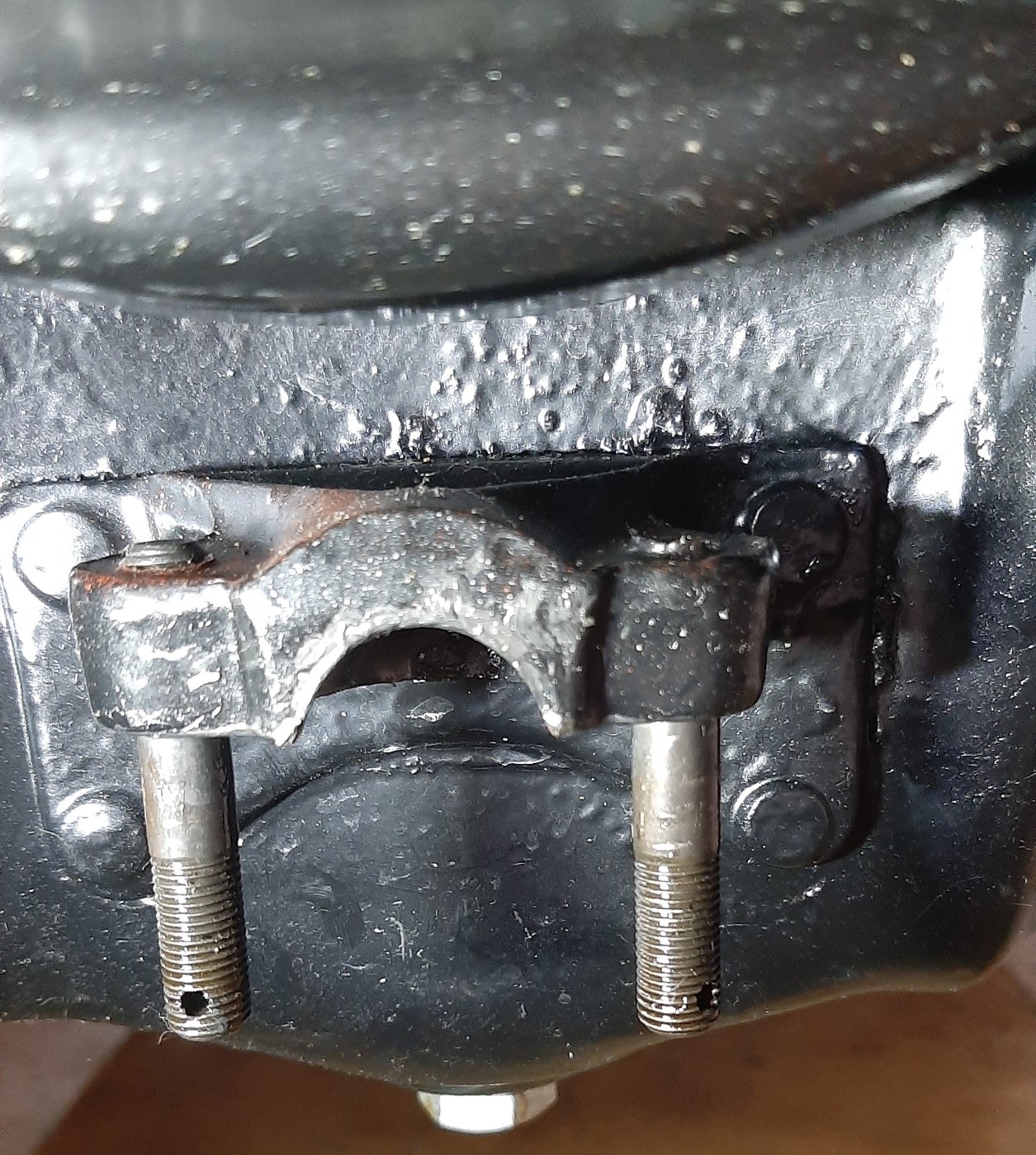 I had loosened the spring clip in the hopes that things might move rearward and help the wishbone to align with the ball socket. I then referred to the Ford manual for reassembly: Since it says “draw nuts down tightly”, I did just that and found that the nuts went further onto the spring clip than previously. I added a couple of washers to the spring clip nuts to align the cotter keys with the castellated area of the nuts. Maybe I didn’t apply enough pressure during the assembly during the initial reassembly after the restoration or perhaps the spring has flattened out a little since the re-arching.