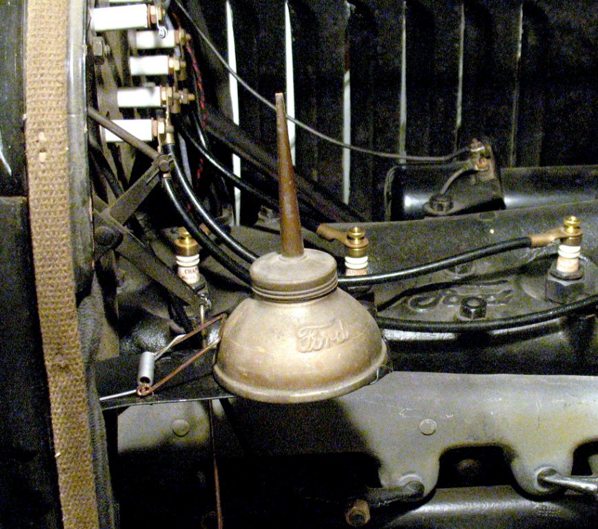 Here’s my little secret if you want a decent spring loaded oil can holder…buy a WW2 Jeep oil can holder, paint it black, and mount it on your firewall. Looks the part and costs 17 bucks…
