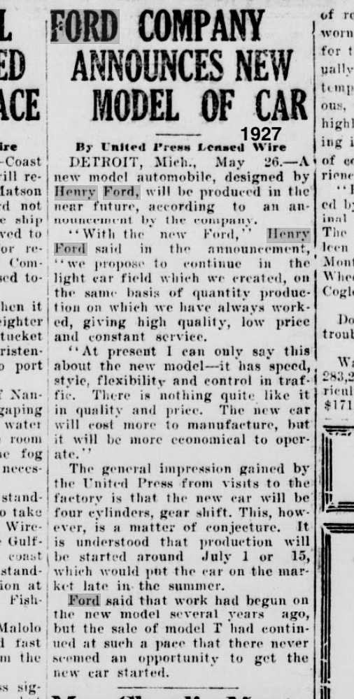 Appropriate date due to the fanfare of the ending, esp. since Ford announced at the same time the New Ford, and that production would halt at all 24 plants and lay off 10,000 employees. The factory change overs were done rather rapidly from June 1 to early Nov 1927 when the Model A was introduced.